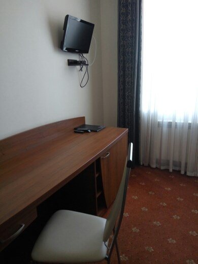 Wi-Fi, телефон, душевая кабина, санузел, полутораспальная кровать, вешалки, письменный стол, багажная тумба, зеркало, вид на город, кулер на этаже, вид во двор, стул, тумба, туалетные средства, цифровое тв, телевизор с плоским экраномВ гостиничном номере