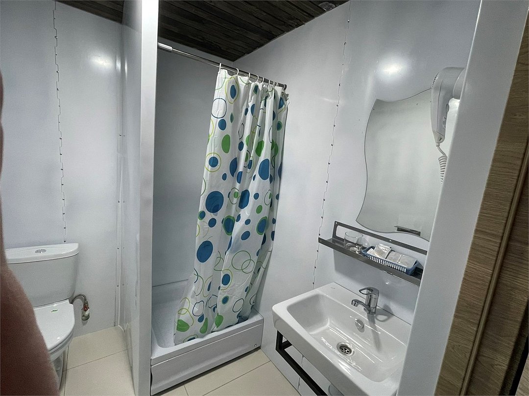 Просторный однокомнатный номер с тремя односпальными кроватями, прикроватные тумбочки, письменный стол, большой шкаф-купе. Санузел в номере, душевая кабина. Телевизор с плоским экраном, беспроводной интернет.Услуги и удобства