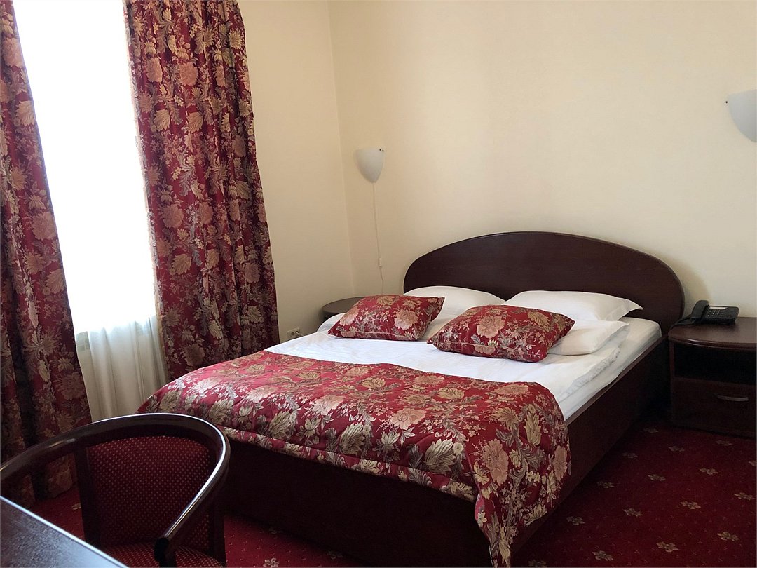 Однокомнатный просторный номер с одной 2-СП кроватью и одной 1-СП кроватью. В номере свой санузел, душевая кабина, биде. Шкаф-купе, письменный стол, холодильник.Услуги и удобства
