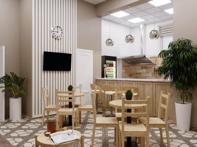 В отеле ежедневно работает кафе с европейской кухней, там гости могут заказать себе завтраки, обеды и ужины.