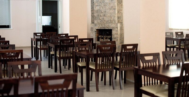 Столовая находится в отдельно стоящем здании. Просторный зал подходит для организованного питания больших групп и банкетов крупных компаний: тут комфортно разместятся до 100 человек одновременно.