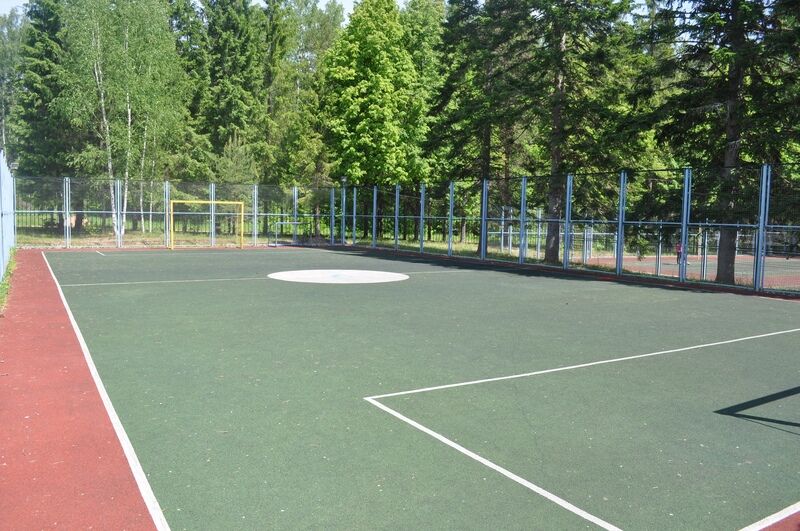 Профессиональные футбольная, волейбольная и баскетбольная площадки с качественным прорезиненным покрытием, разметкой и инвентарем.