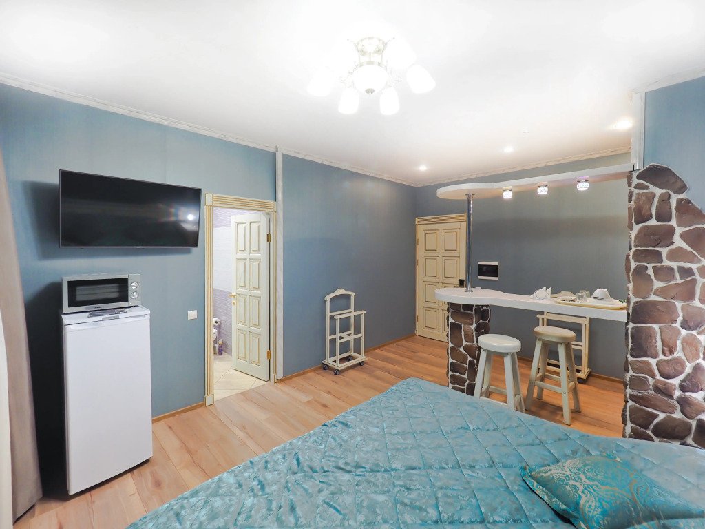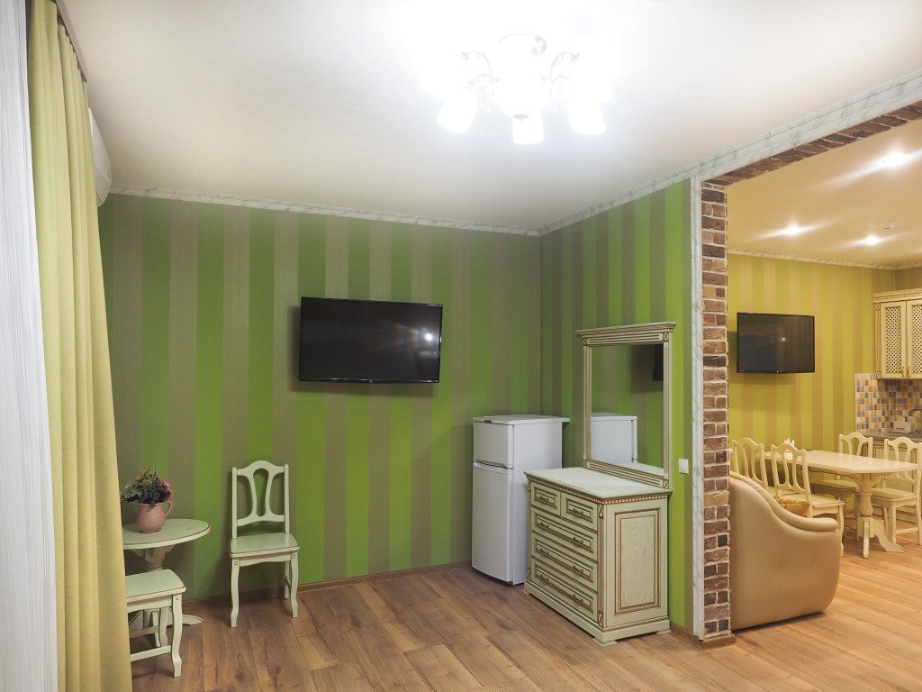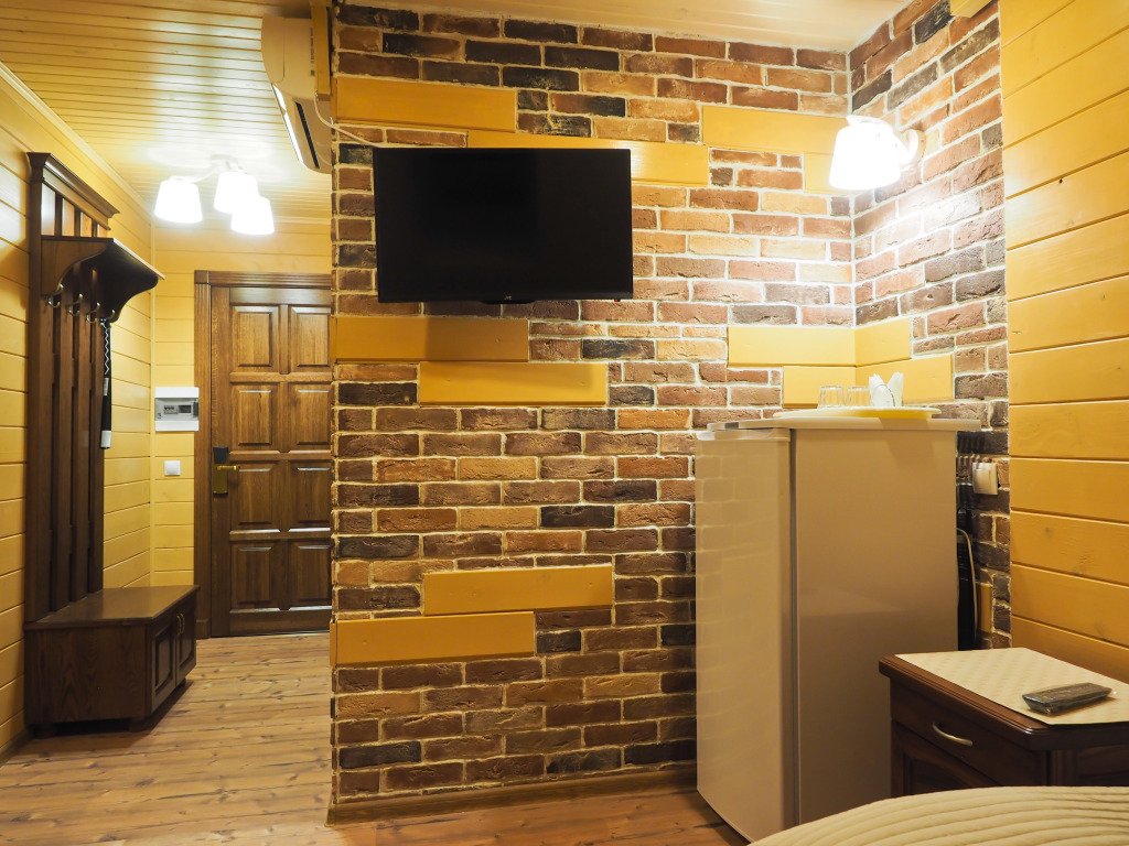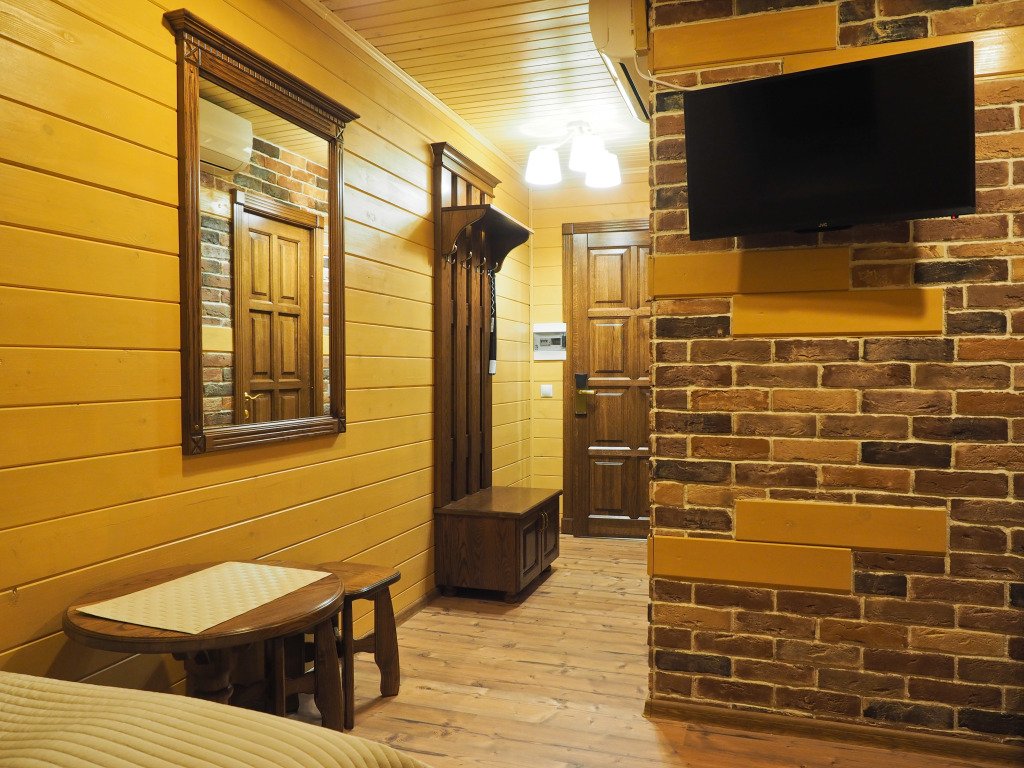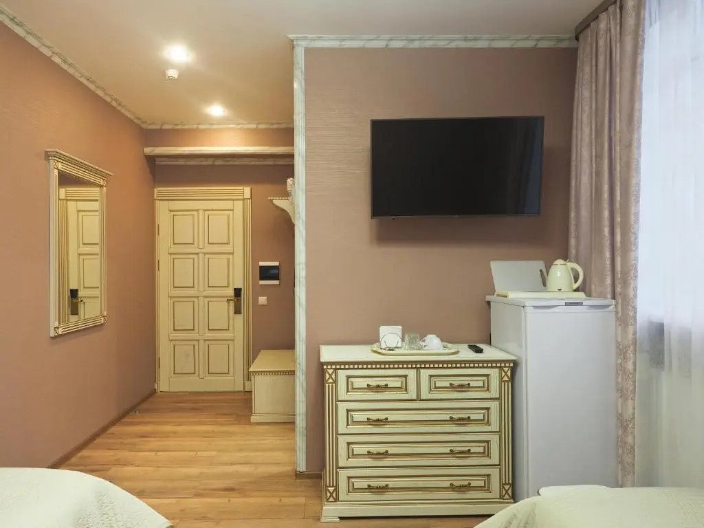 Имеются телевизор и халат. Перечисленные услуги есть не во всех номерах.
