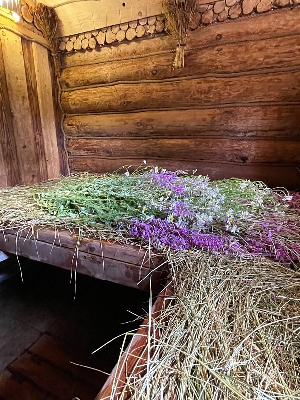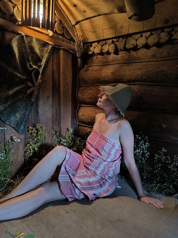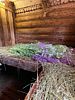 Индивидуальная программа парения проводится при комфортной для вас температуре. Работают 2 мастера, парение на сене разнообразными вениками, термокачели (пруд с ключами), маски и скрабы. В программу входит травяной чай, фрукты.