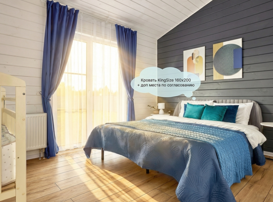 - три спальни и просторная кухня-гостиная с раскладным диваном, рассчитанная на комфортное размещение 8 гостей; дополнительно можно организовать до 5 спальных мест на евро-раскладушках по запросу, а также предусмотрена детская кроватка для самых маленьких;
