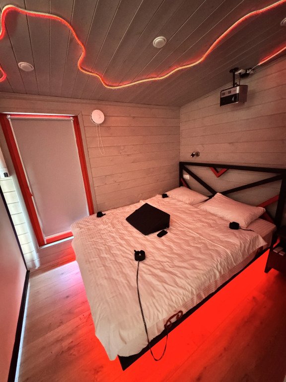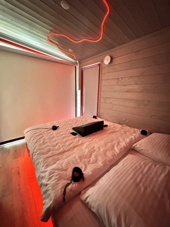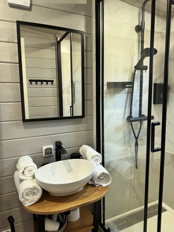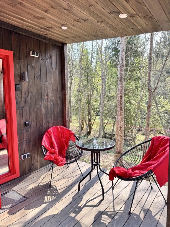 В распоряжении гостей стилизованные дома категории 18+ с панорамными окнами. Дома с кухнями, ванными комнатами, мангальными и костровыми зонами. Рядом с каждым домом есть банный чан. В каждом доме есть светонепроницаемые шторы.
