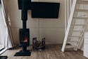 телевизор, Wi-Fi, кондиционер, фен, плита для приготовления пищи, микроволновая печь, обогреватель, душевая кабина, водонагреватель, теплый пол, банные полотенца, гигиенические средства, терраса, двуспальная кровать, обеденный стол, комод, камин, душ, вид на реку, туалет, панорамные окна, раскладной диван, мини-холодильник, телевизор со Smart TV, двуспальный раскладной диван-кровать, мыло, можно с питомцамиВ домике