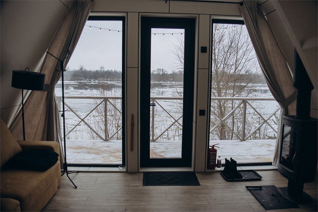 телевизор, Wi-Fi, кондиционер, фен, плита для приготовления пищи, микроволновая печь, обогреватель, душевая кабина, водонагреватель, теплый пол, банные полотенца, гигиенические средства, терраса, двуспальная кровать, обеденный стол, комод, душ, вид на реку, туалет, панорамные окна, раскладной диван, мини-холодильник, телевизор со Smart TV, двуспальный раскладной диван-кровать, мыло, можно с питомцамиВ домике