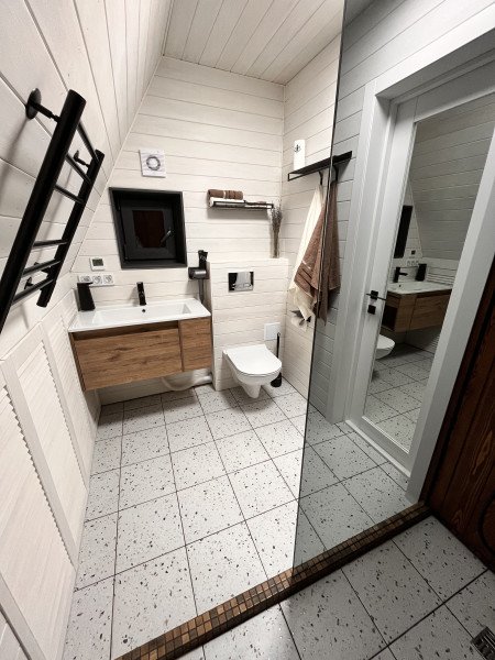 Wi-Fi, телевизор, кондиционер, станция «Алиса», умный дом. Теплые полы. Ванная комната со всеми необходимыми принадлежностями личной гигиены: зубные щетки, шампунь, гель для душа, туалетная бумага, тапочки, полотенце.