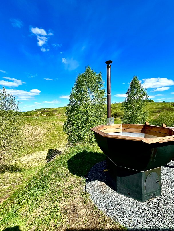 Гости могут насладиться сибирским банным чаном на свежем воздухе. Чан предварительно нагревается до комфортной температуры, после чего его можно использовать, пока вода не остынет.