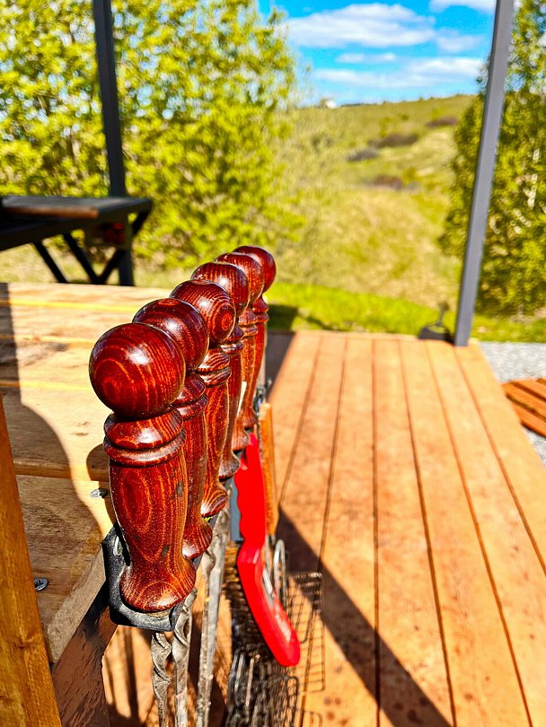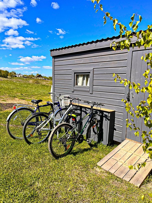 В доме: отдельная спальная комната на первом этаже с панорамным окном и видом на холмы и овраги, просторная и уютная гостиная с панорамными окнами, раскладывающийся диван. Видовая комната на втором этаже с ортопедическим матрасом, постельное белье, одеяла и подушки.