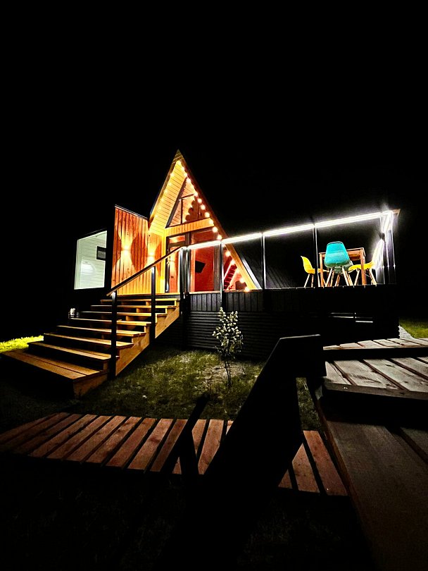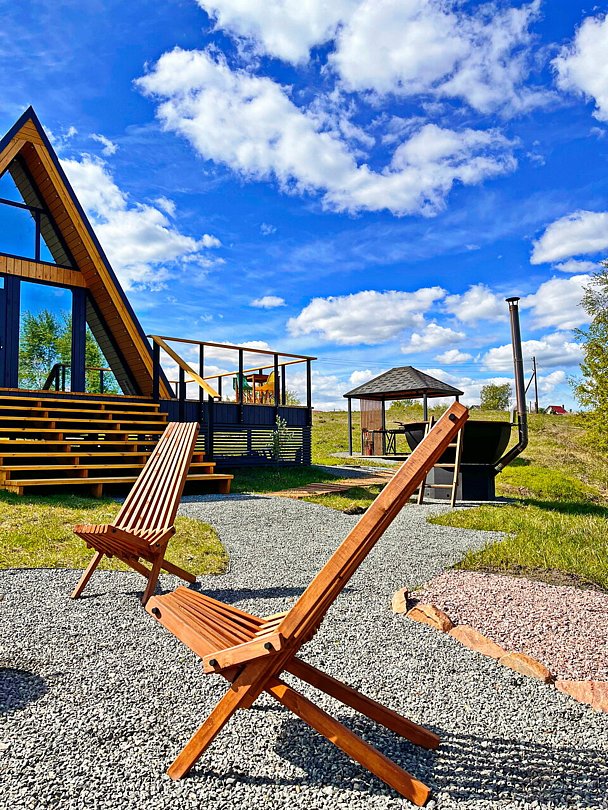 Klif House – стильный и уютный дом A-Фрейм площадью 60 м² расположенный на участке 45 соток, в тихом месте без соседей на склоне с Сибирским чаном, оборудован всем необходимым для комфортного отдыха.