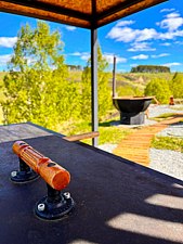 На территории: веранда с красивым видом на озеро и холмы, сибирский чан, костровая чаша для уютного времяпровождения на свежем воздухе (дрова включены в стоимость). Мангальная зона для приготовления ваших блюд (шампура, решетка). Комплект угля 2,5 кг и розжиг 0,5 — за дополнительную плату.