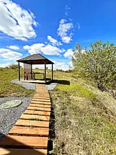Костровая зона — идеальное место для уютных посиделок на свежем воздухе. Здесь гости смогут насладиться теплом живого огня, провести время в кругу близких и насладиться атмосферой уюта под открытым небом.