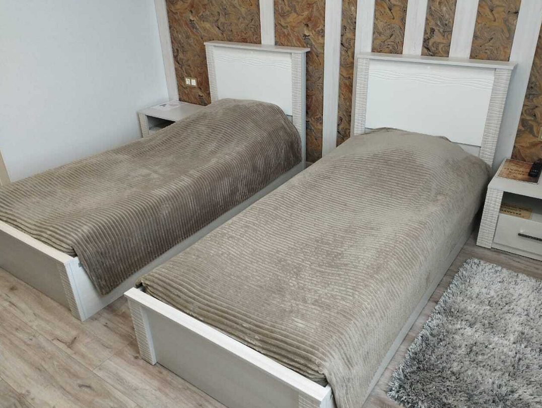 В каждой комнате по 2 кровати, с ортопедическим пружинным блоком для комфортного сна. Также есть бесплатный Wi-Fi, телевизор, холодильник, чайник, фен, посуда, полотенца, халаты, тапочки, кухонные принадлежности. Чай и кофе в подарок. Туалет и душевая в номере. Санузел с подогревом пола.