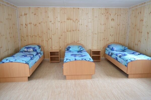 Размещение на турбазе «Поснокорт» производится в 3-х местные охотничьи домики.