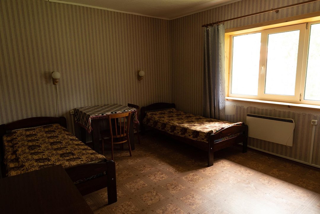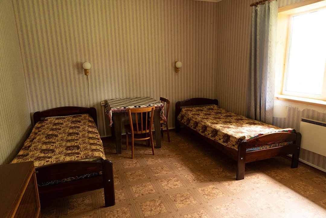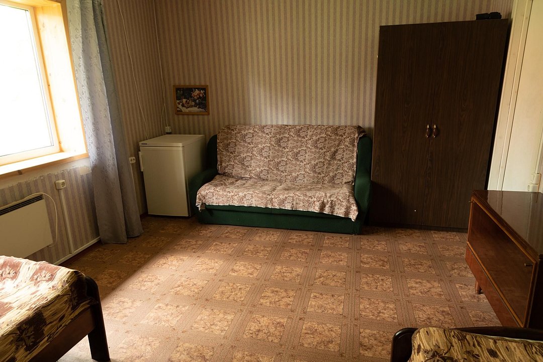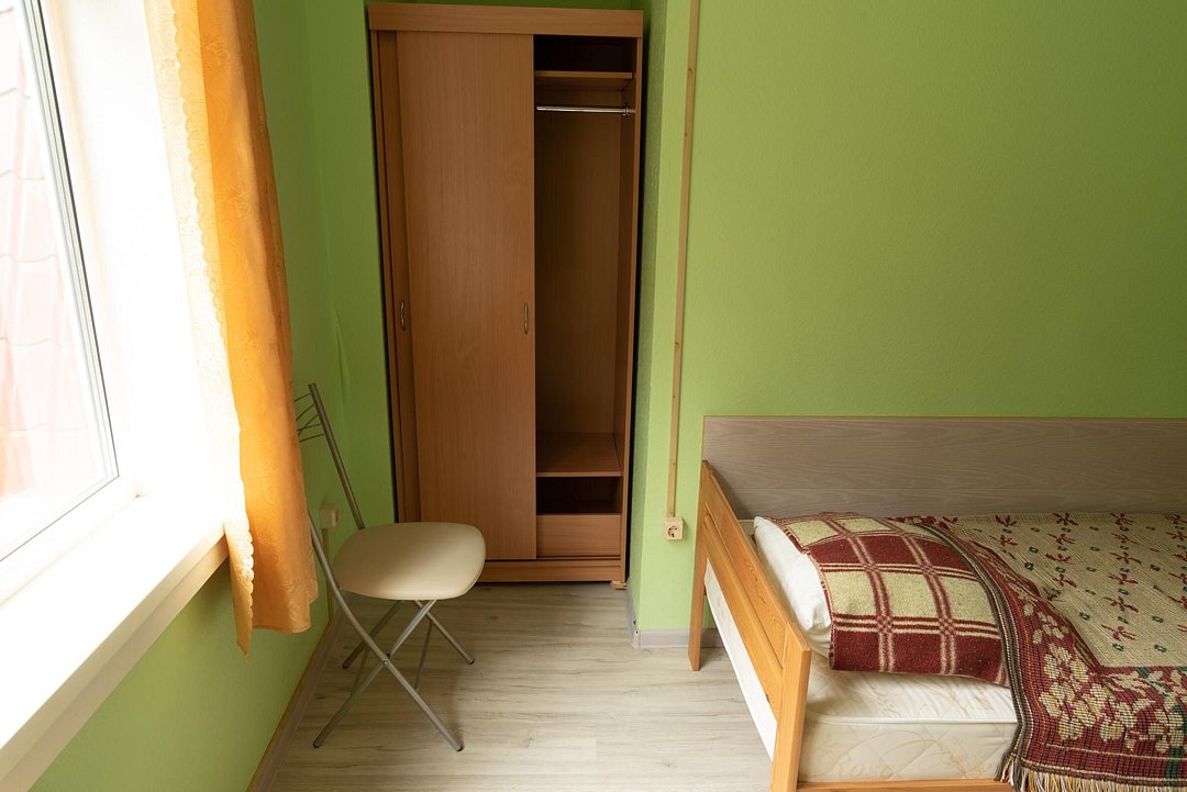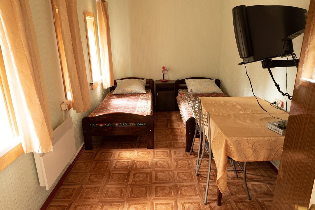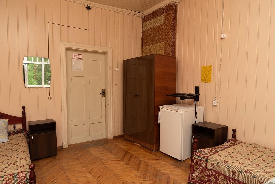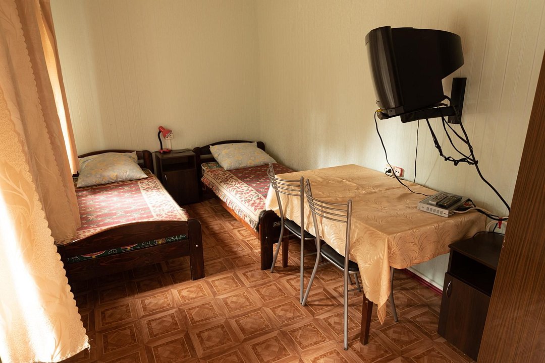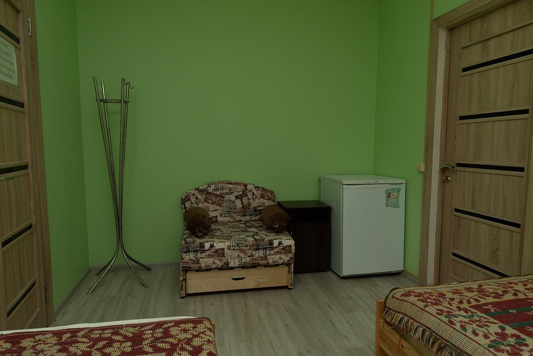 Просторный и функциональный номер для компании друзей или семьи. Есть все необходимое для проживания: 3 раздельные кровати, холодильник, телевизор, обеденный стол, санузел на этаже. Отличный вариант для путешественников, ценящих простор и функциональность.