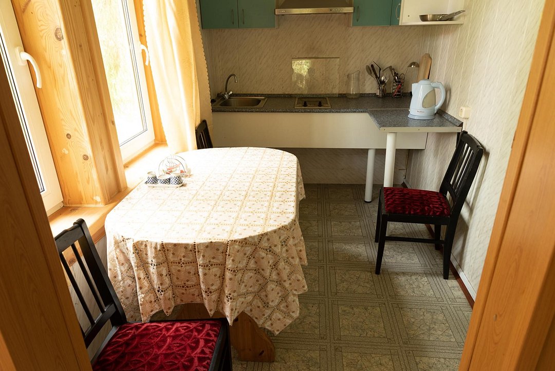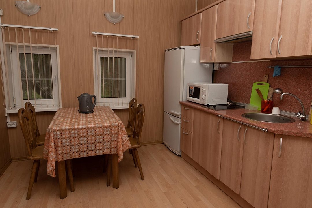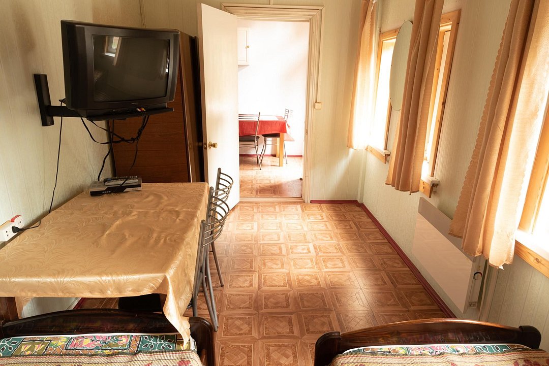 Отличный вариант для друзей или коллег, ценящих личное пространство и удобство. Апартаменты оборудованы собственной кухней и холодильником, а также всем необходимым для приятного отдыха. В номере есть телевизор, зеркало, вместительный шкаф для вещей. Санузел общий, расположен на этаже.