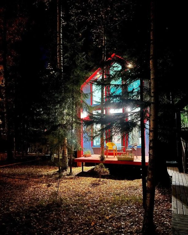 На участке в 20 соток: 3 дома (хозяйский и 2 гостевых домика), деревянные дорожки, есть уличная закрытая веранда-терраса и открытая веранда-терраса с камином и оборудованной летней кухней 50 кв. м, мангальная и костровая зоны, закрытая парковка для гостей, на участке вековые сосны и ели.