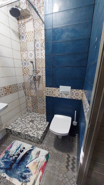 Домики двухэтажные, 55 кв. м, второй этаж — мансардный. Гостям предоставляются постельное бельё и разноцветные полотенца, по запросу детские кроватка и стульчик.