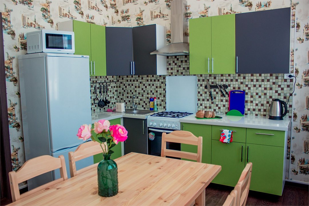 Две изолированные спальни, гостиная, санузел (душевая кабина, умывальник с тумбой и зеркалом, туалет), кухня, кулерУслуги и удобства