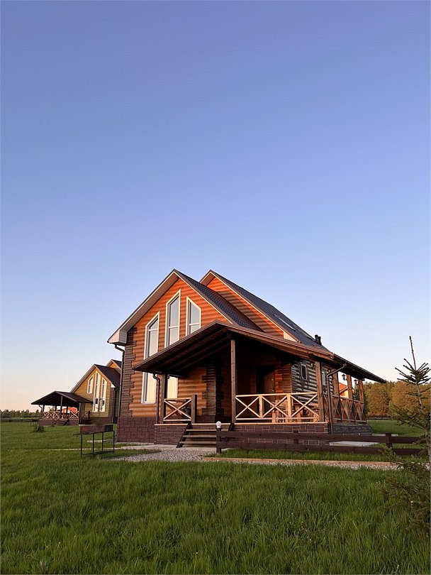 Двухэтажный деревянный коттедж с двумя санузлами, балконом и пятью комнатами.Услуги и удобства