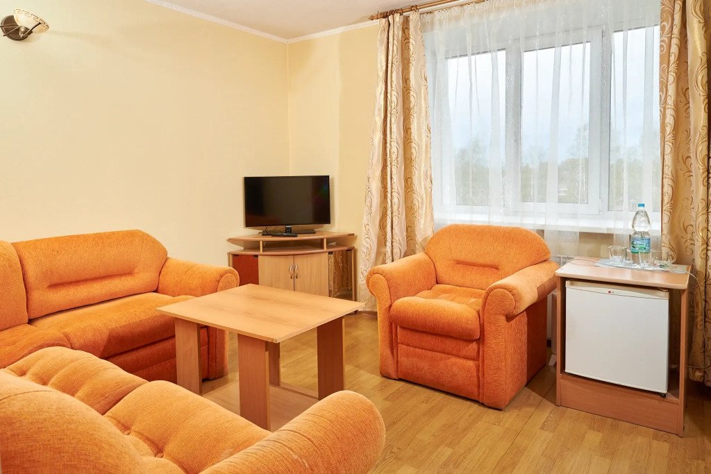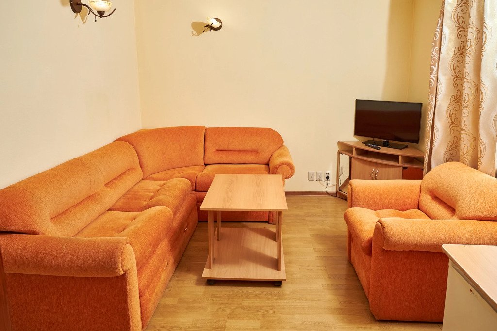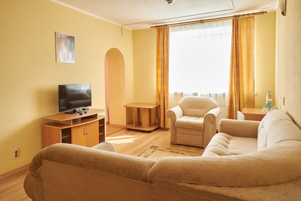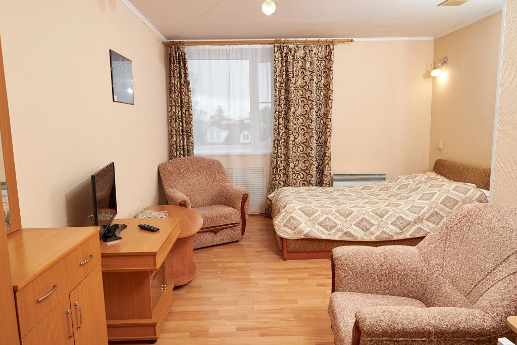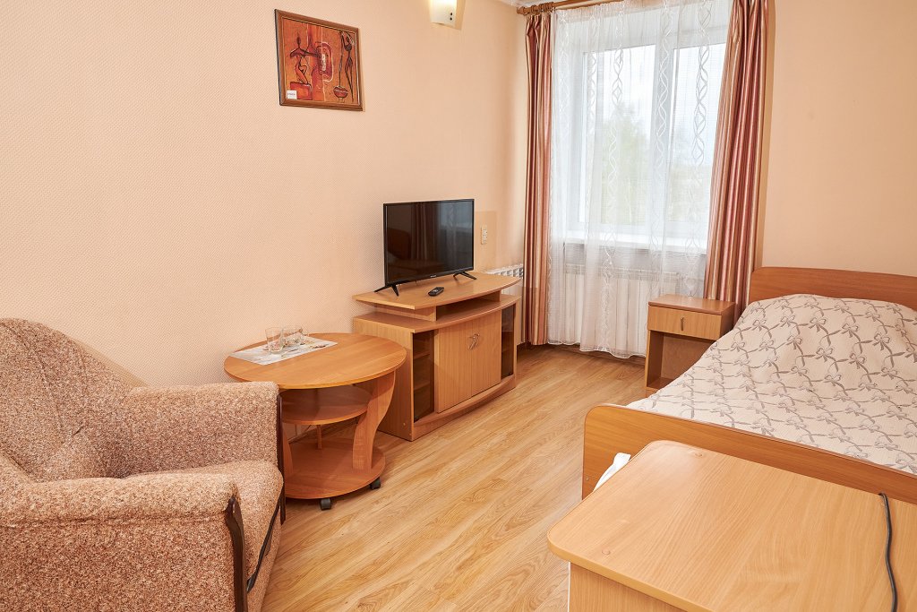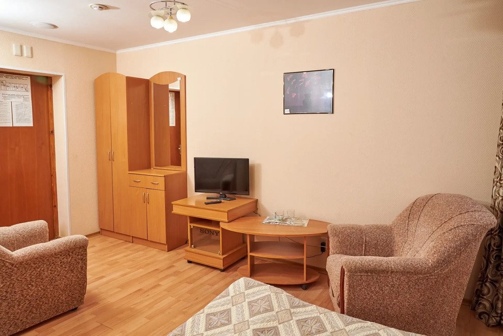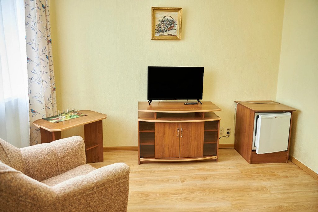 В номере вы найдёте телевизор. Оснащение зависит от выбранной категории номера.