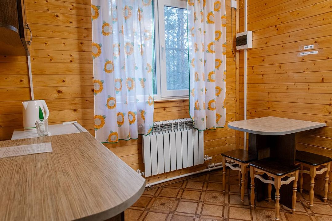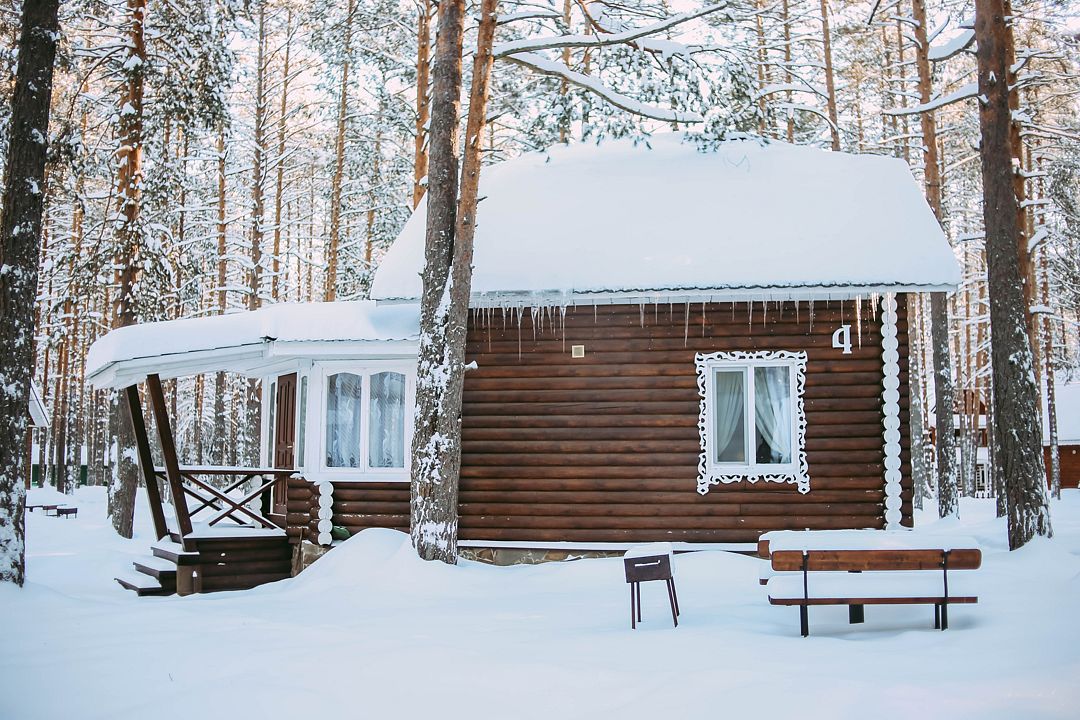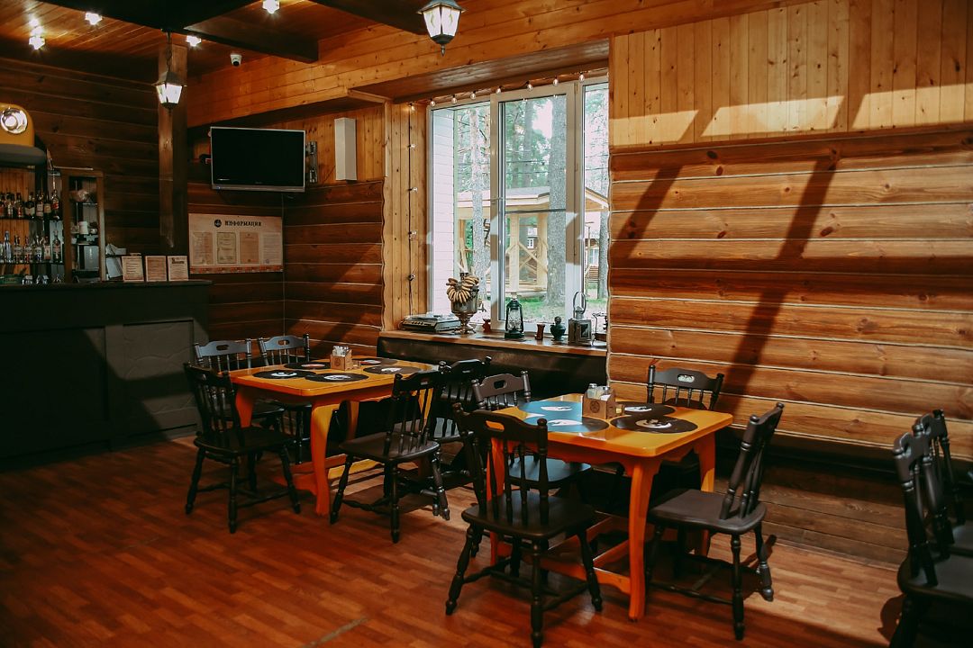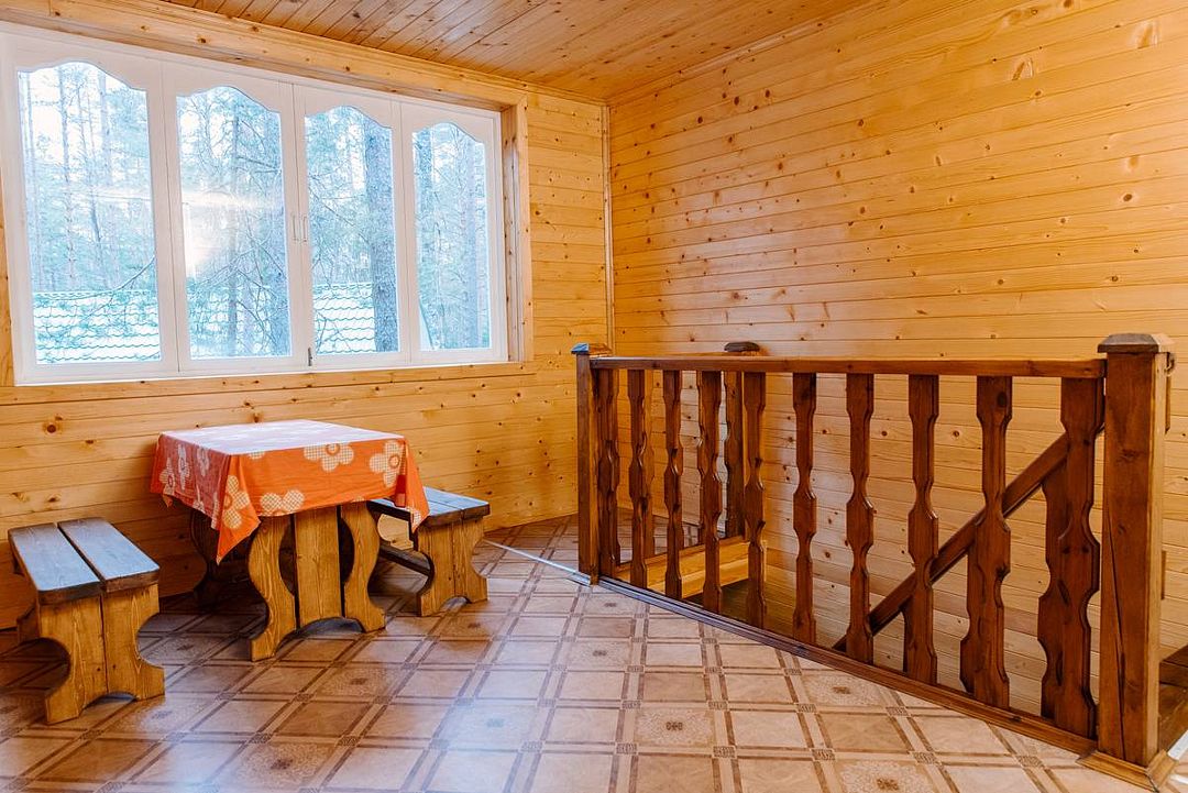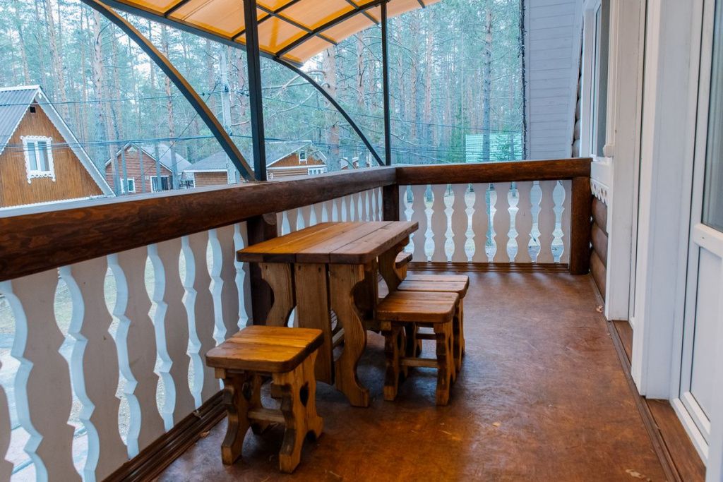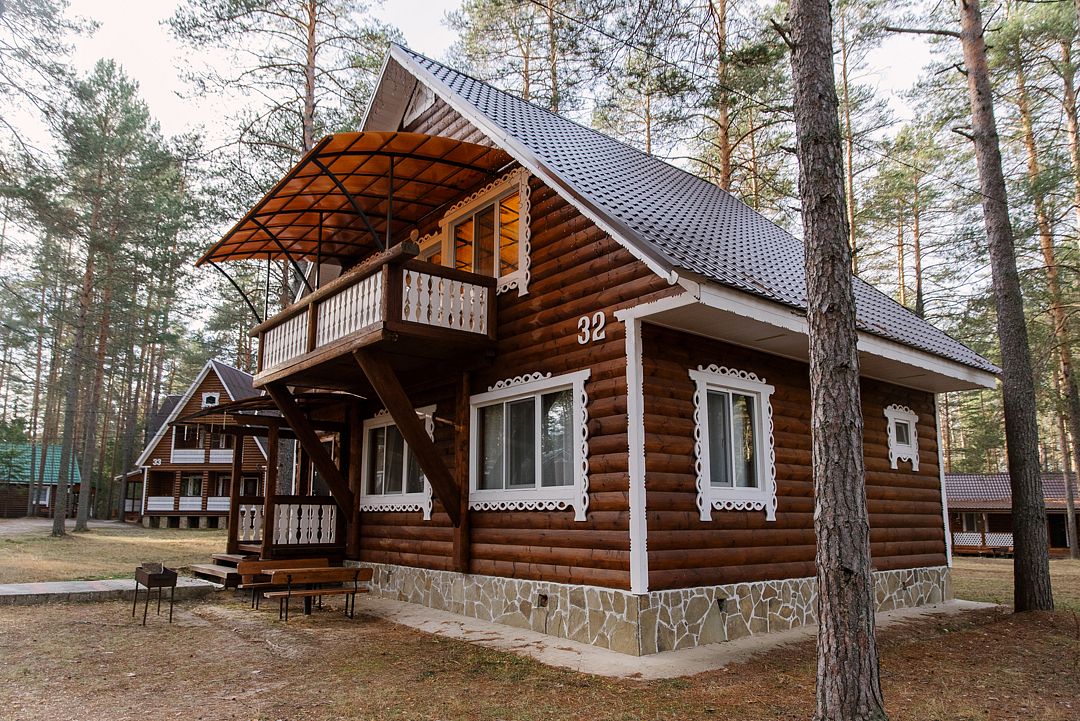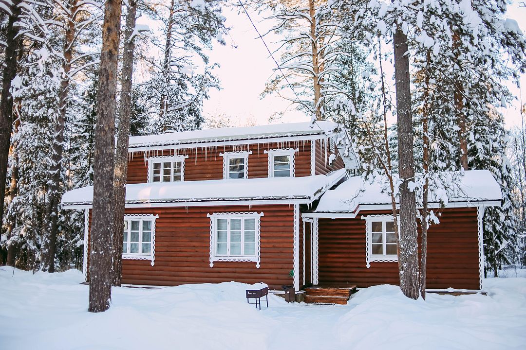 На территории загородного комплекса расположены двух, четырех, шести и семиместные деревянные дома, вы сможете подобрать место для отдыха любой компании. С веранды открывается вид на сосновый бор