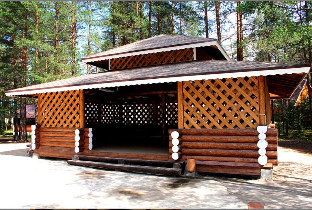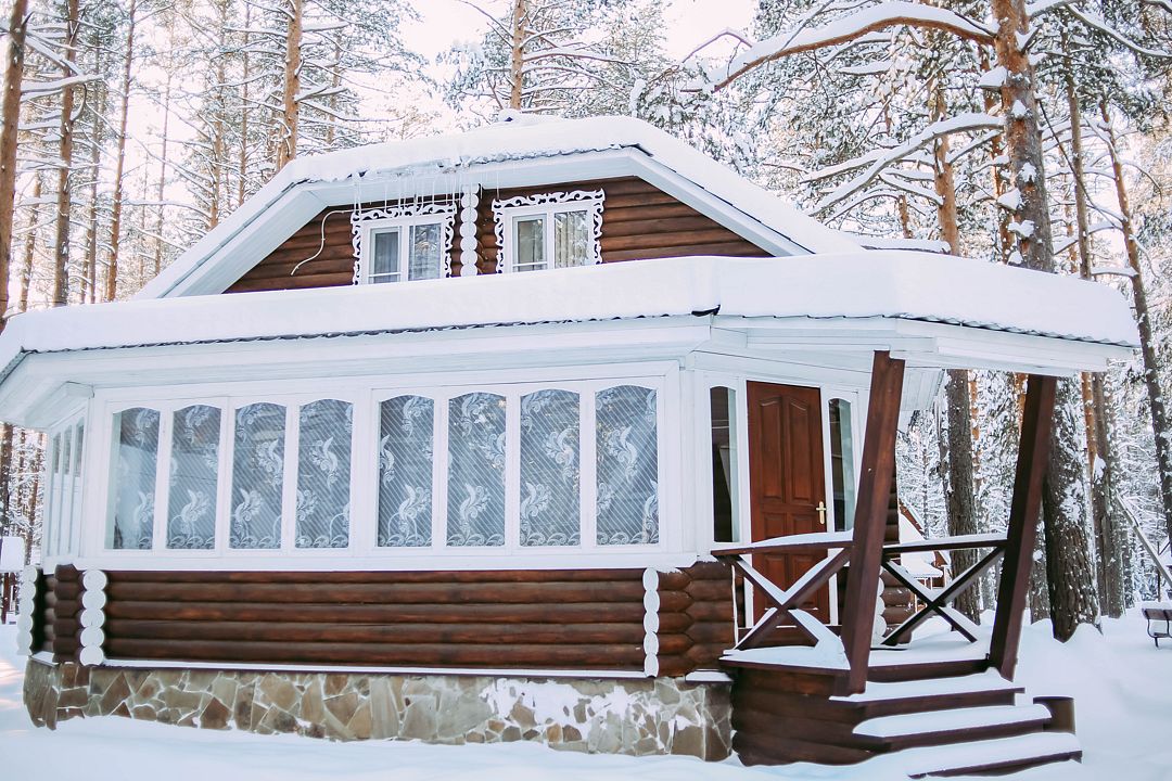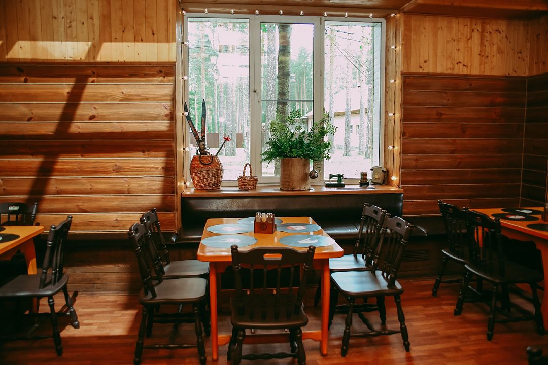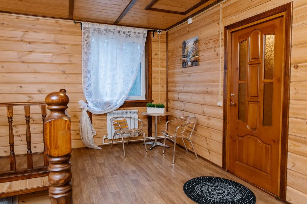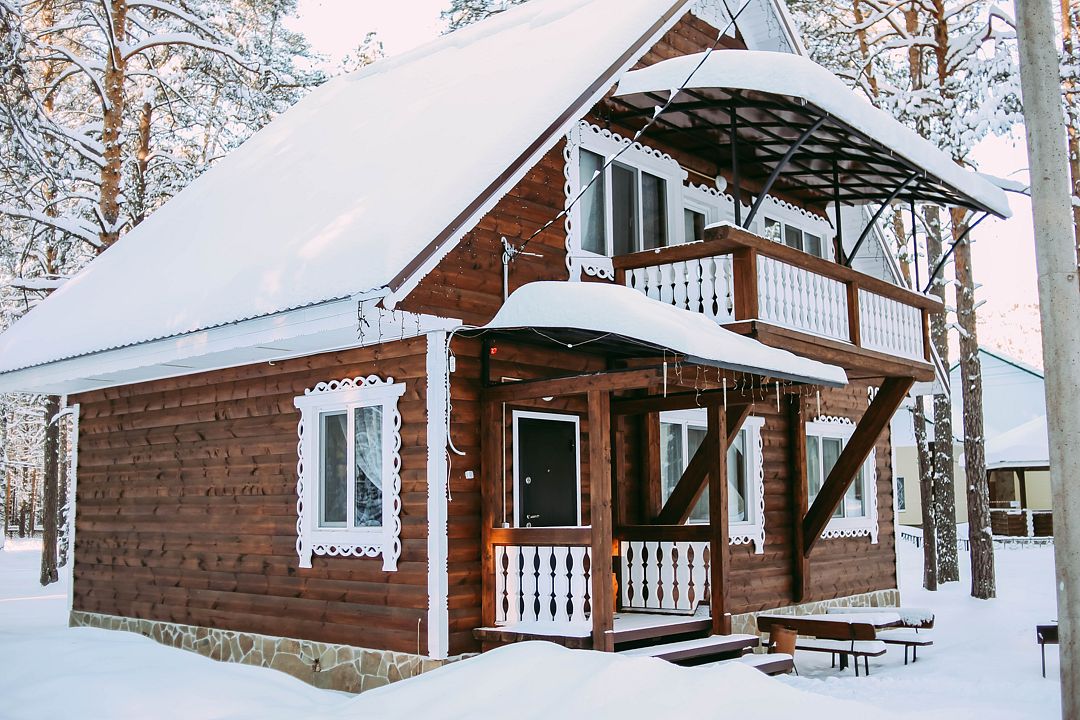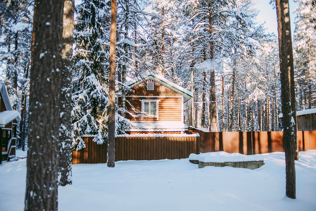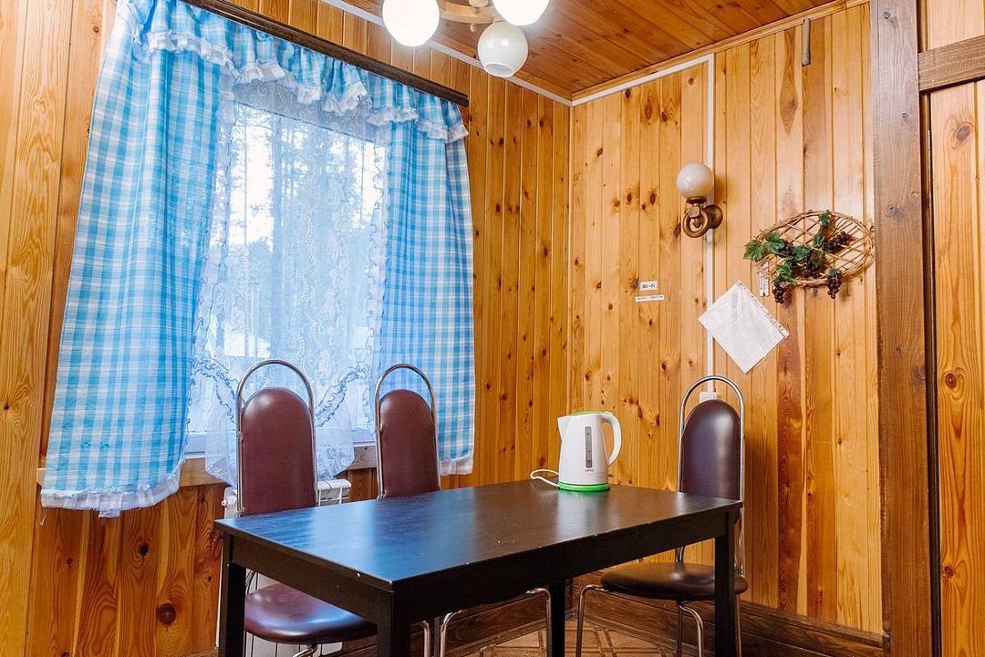 На территории загородного комплекса расположены двух, четырех, шести и семиместные деревянные дома, вы сможете подобрать место для отдыха любой компании. С веранды открывается вид на сосновый бор