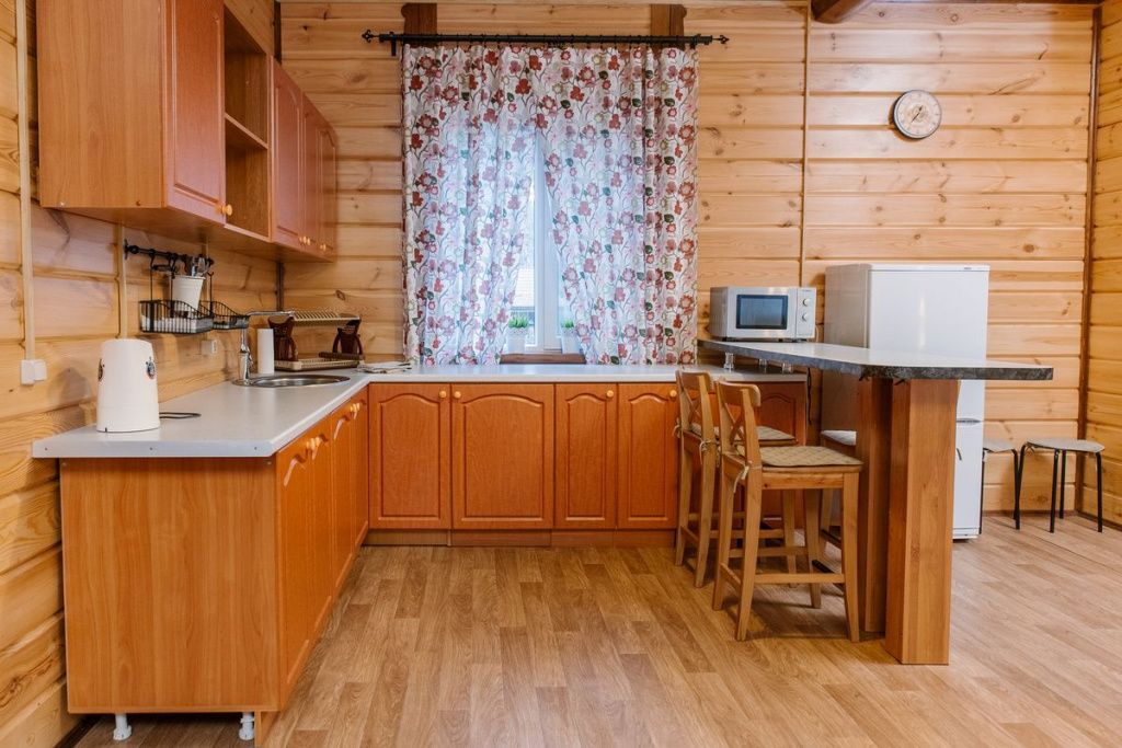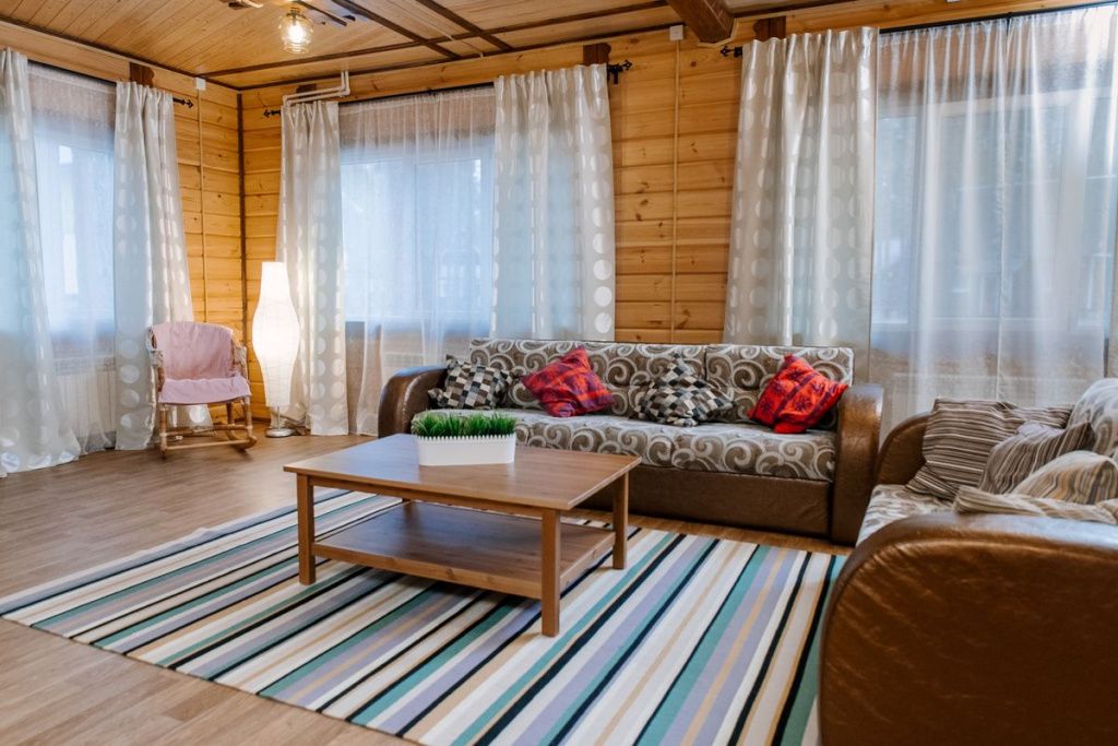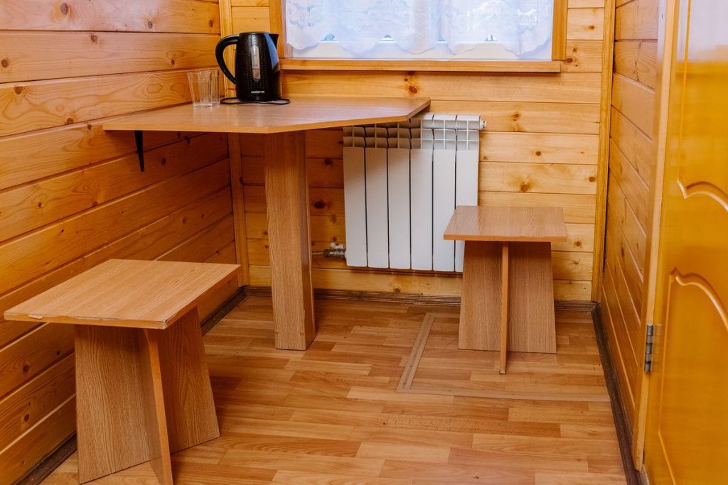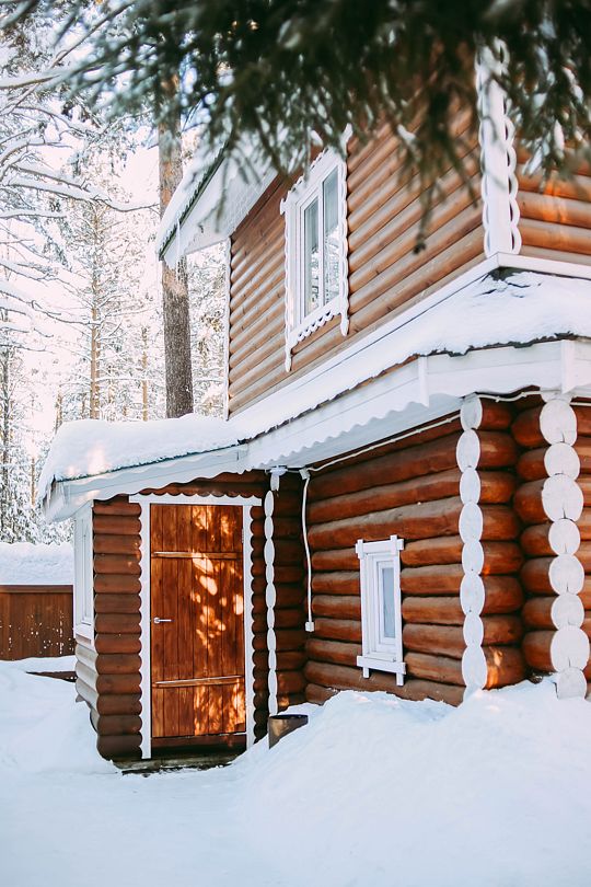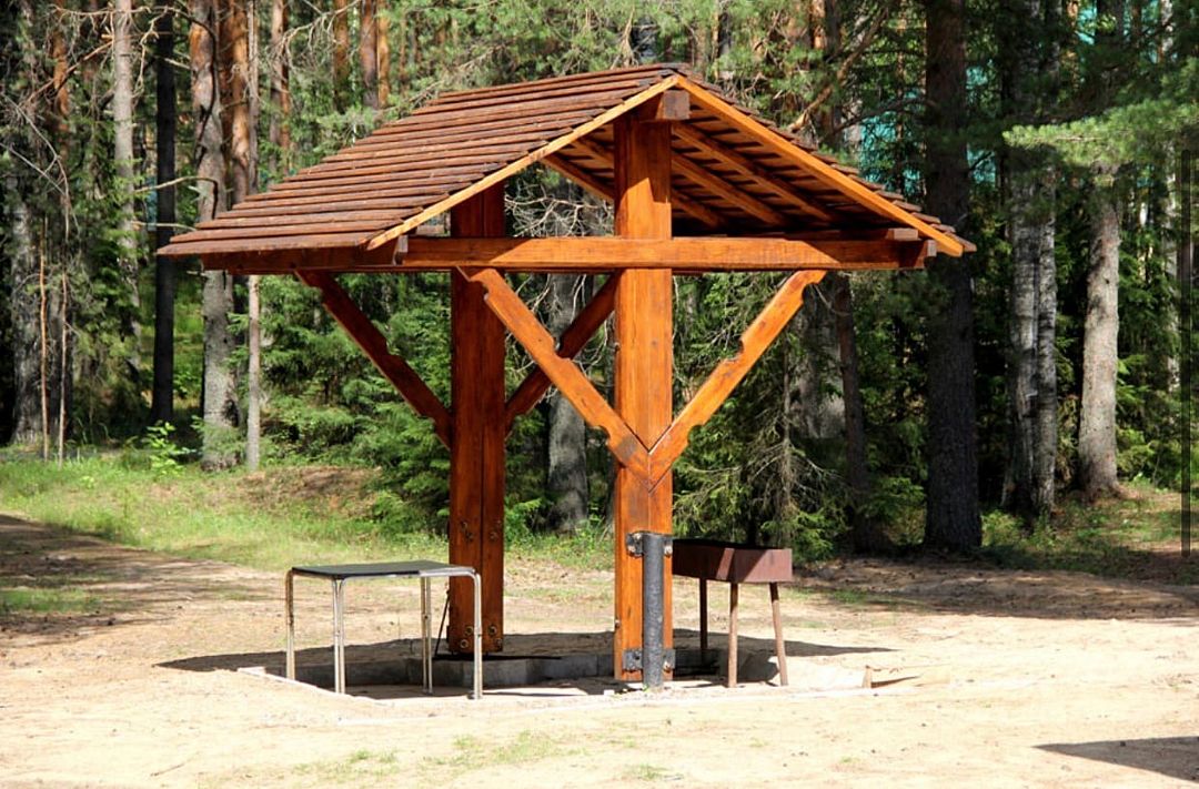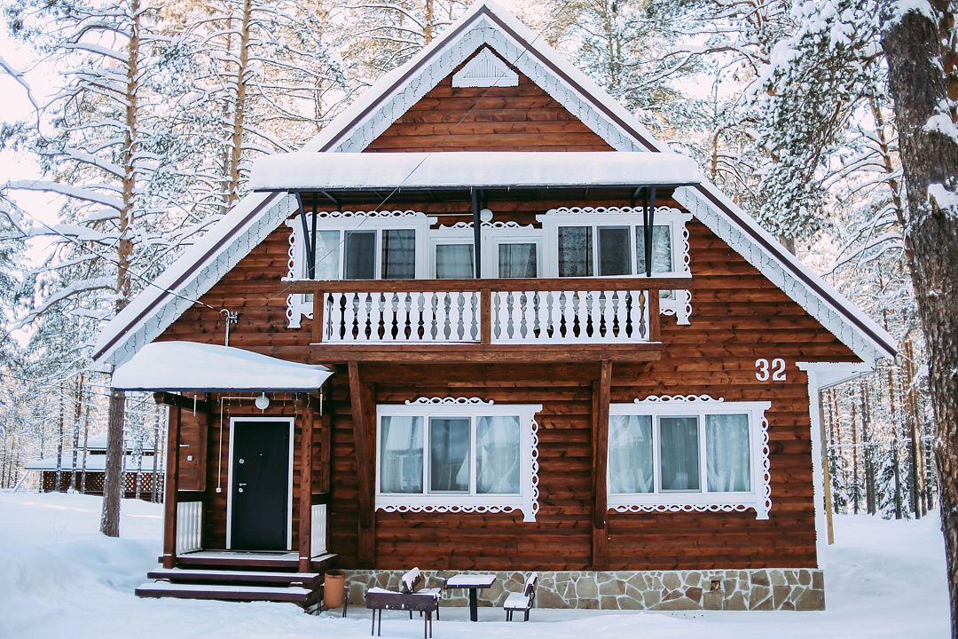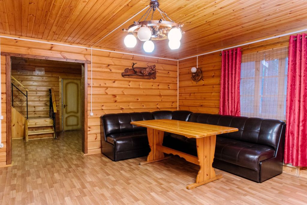 На территории загородного комплекса расположены двух, четырех, шести и семиместные деревянные дома, вы сможете подобрать место для отдыха любой компании. С веранды открывается вид на сосновый бор