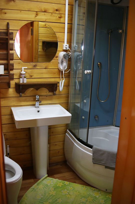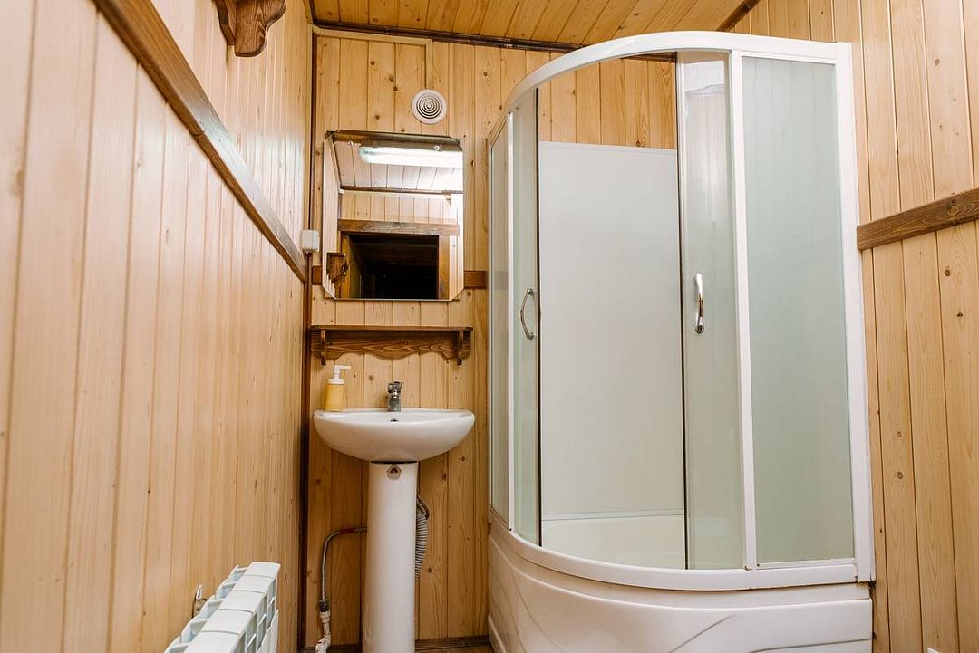В административном здании базы отдыха расположено два номера (эконом) на два и три места с туалетной комнатой. Душ на территории загородного комплекса работает круглосуточно.