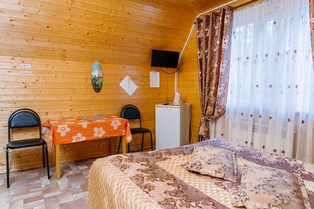 Номерной фонд состоит из 32 комфортабельных номеров в деревянных коттеджах общей вместимостью до 90 человек. Все коттеджи построены из натурального дерева и благоустроены, поэтому проживания в них будет комфортным и приятным.