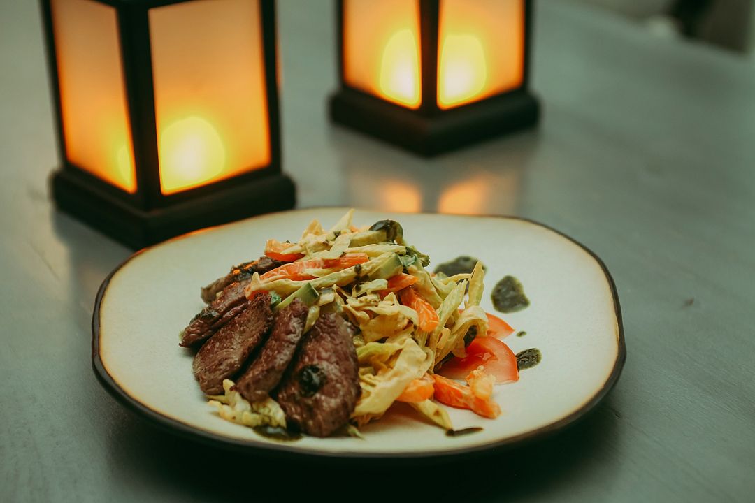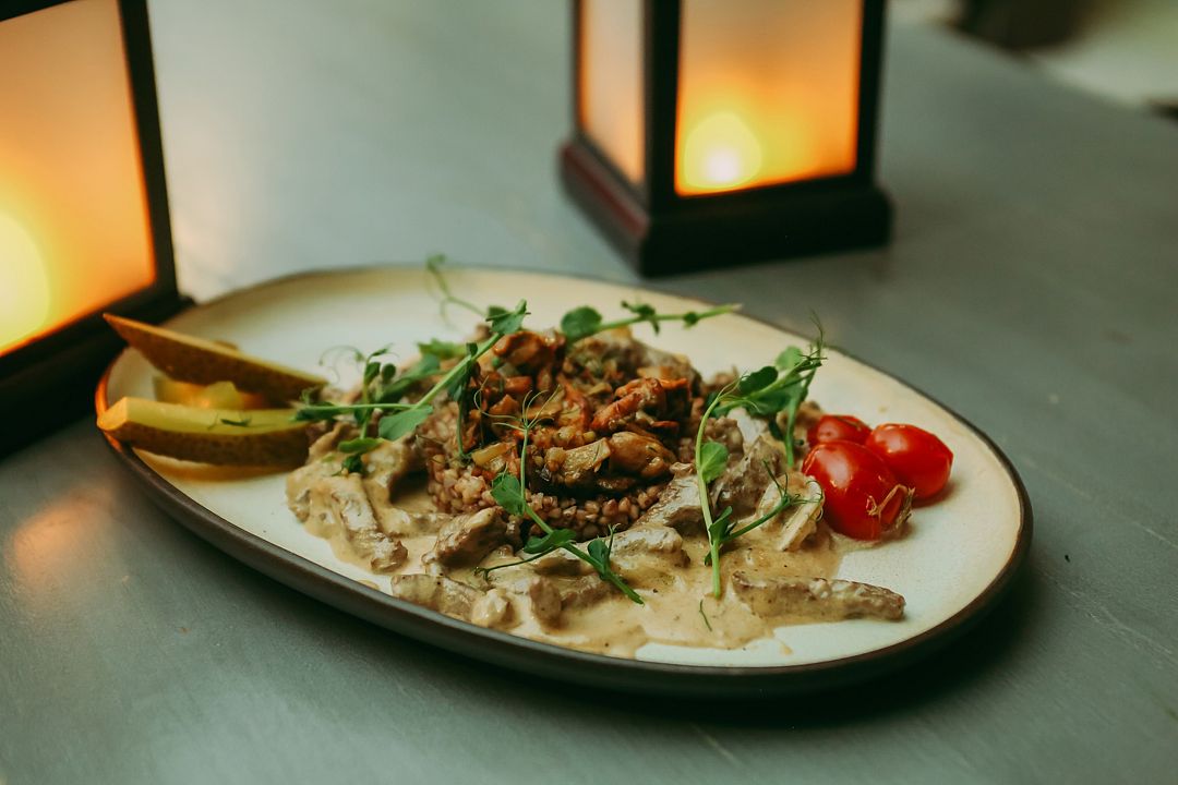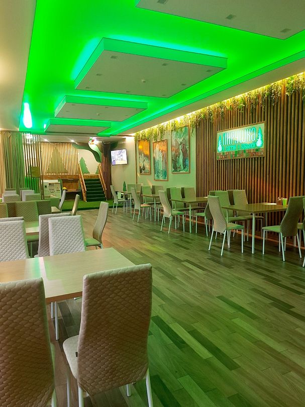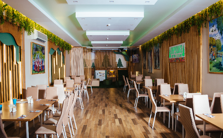 Зал ресторана рассчитан на сто пятьдесят персон, смело приглашайте гостей.