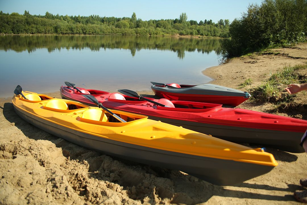 Сплав проходит на безопасных каркасных байдарках (3 места в каждой), рафт (6 мест в каждой).