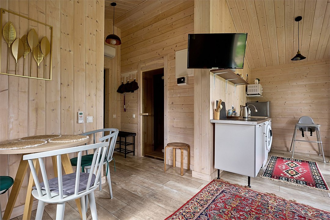 При бронировании от 2 суток — 1 час сауны в подарок Домики в КП «Грин Форест Клаб» (МО, Ступино, с. Мышенское) в окружении леса и закатов — идеальное место для отдыха от городской суеты На территории: Дом до 2 гостей и дом до 3 гостей (вместе комфортно до 5 человек). Цена указана за 2-х гостей. В домах есть всё необходимое: техника, посуда, бельё, полотенца, мыльные принадлежности. В поселке: • бесплатная доставка от ВкусВилл, Ozon, Delivery Club • детские и спортплощадки, корты, поля, каток, горка • пляж, озеро, рыбалка, прогулки по лесу В 5 минутах: ресторан на воде, конюшня, бани и SPA, магазины и фермерские продукты В 30 минутах: Приокско-террасный заповедник, музей Чехова, горнолыжка и тюбинг ⛷️ Безопасность: охраняемая территория, КПП, камеры, парковка у дома. Условия: • Залог 6000₽ (возврат при выезде) • Доплата за гостей свыше 2-х • С животными — по договорённости (1500₽) Отдыхайте на природе с комфортом и пользой!Услуги и удобства