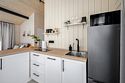 - куxня-гoстиная с раскладным двуспальным дивaном и большим TB;