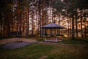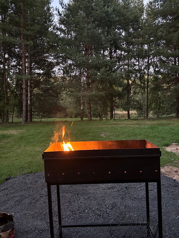 Рядом с каждым домиком уютно обустроена беседка с мангалом, создающая идеальные условия для наслаждения свежим воздухом и природой. Здесь гости могут приготовить изысканные блюда на огне, вдыхая аромат леса, и провести время в кругу близких, погружаясь в атмосферу безмятежности и комфорта.