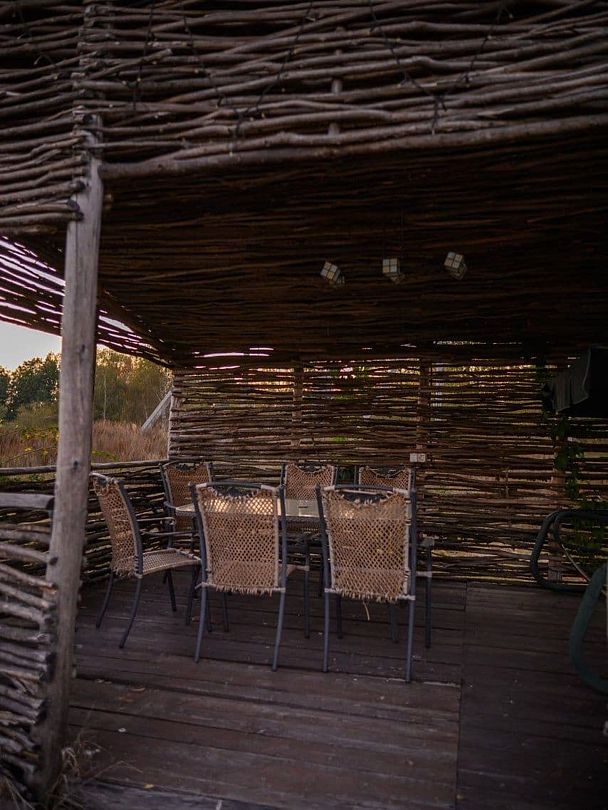 На базе отдыха «Порзамка» гостей встречает круглогодичная уютная беседка, вмещающая до пятнадцати человек. Оснащенная кухней, санузлом и зоной для мангала, она создает идеальные условия для комфортного отдыха в любое время года.