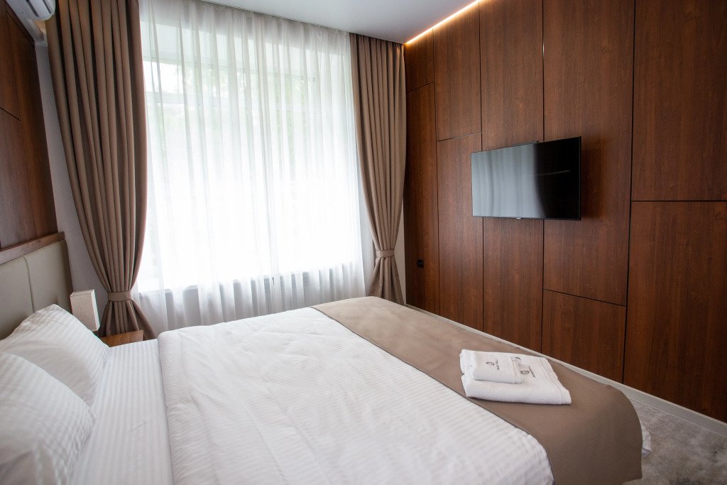 В номере вас будут ждать телевизор и халат. Перечисленные услуги есть не во всех номерах.