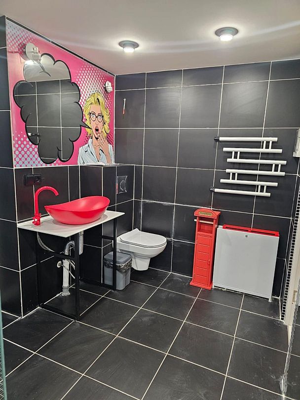 - огромная душевая комната;