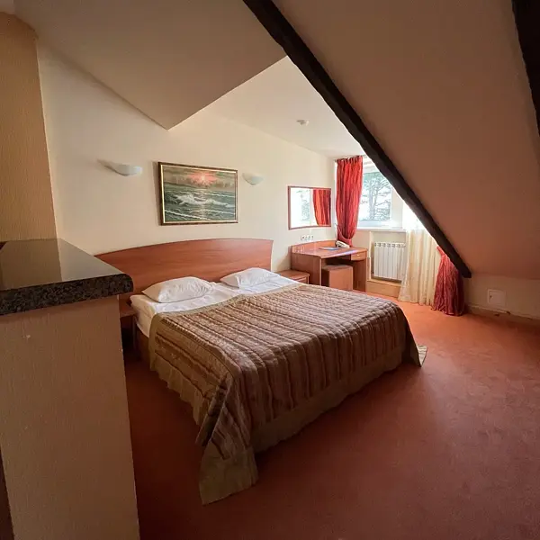 Просторный однокомнатный номер категории «Стандарт Плюс» вмещает двуспальную кровать или две односпальные кровати, большинство номеров также оснащены удобным диваном, поэтому номера данной категории предполагают двухместное или трехместное размещение (раскладные диваны предоставляют возможность размещения 1 гостя).