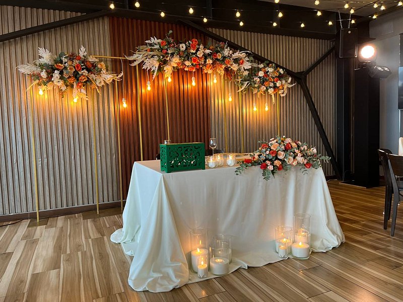 - Услуги фото/видео сопровождения, ведущего, анимации, оформления фотозоны, велком-зоны и банкетного зала с учетом тематики Вашего вечера;