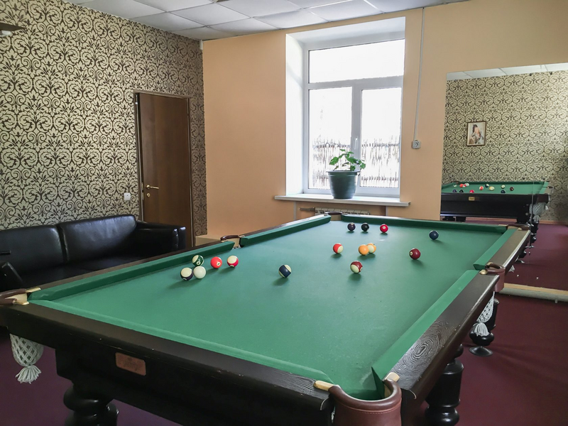 Бильярдный стол с американским пулом находится на первом этаже отеля и уже включён в стоимость проживания. Доступен для игры 24/7 без предварительной записи.
