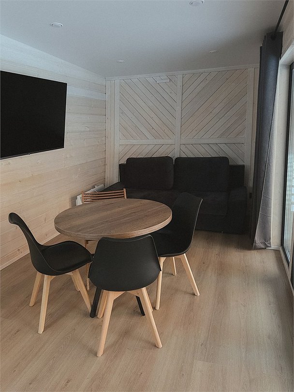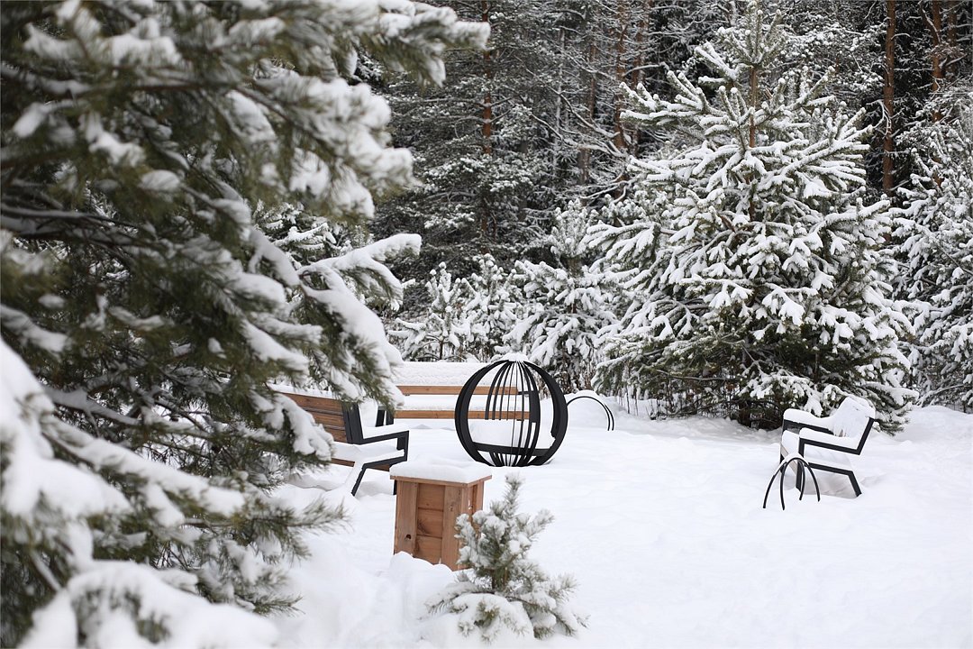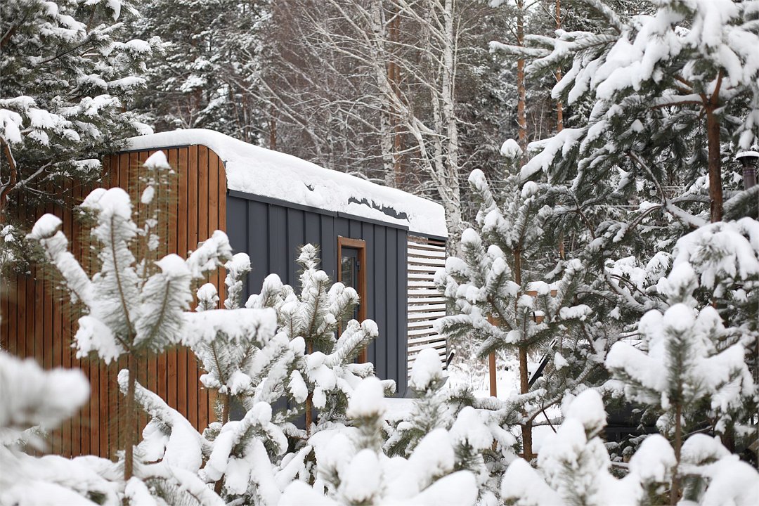 Стильный дом с видом на сосновый лес укроет Вас от лишних взглядов и позволит перезагрузиться в тишине и спокойствии. Рядом с каждым домом располагается чан и мангал с решеткой для барбекю. Не теряя ощущение уединенности, Вы сможете согреться в чане даже в самую холодную погоду. Наши сотрудники сами подготовят его для Вашего комфорта. Пребывание в чане успокаивает нервную систему, расслабляет мышцы и улучшает кровообращение. После него Вы почувствуете себя свежим и обновленным. Дом рассчитан на пребывание от двух до четырех человек. Несмотря на свои размеры, в доме есть всё необходимое - большая двуспальная кровать, кухня, ванная, обеденный стол.Услуги и удобства