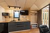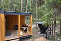 Мини-Дом с чаном по типу "Тинихаус" отлично подходит для отдыха небольшой компанией для тех, кто любит уютные пространства и получает удовольствие от оптимизации места и нестандартных решений. Панорамное окно из гостиной открывает вид на сосновый лес и извилистые дорожки глэмпингаУслуги и удобства