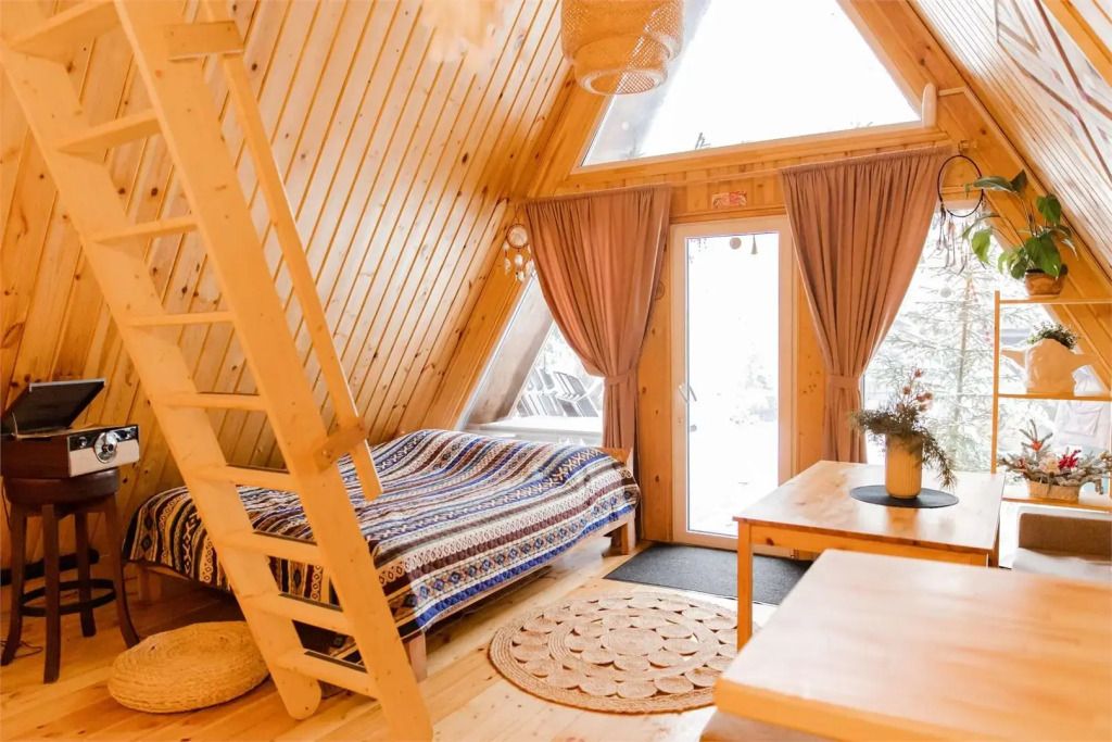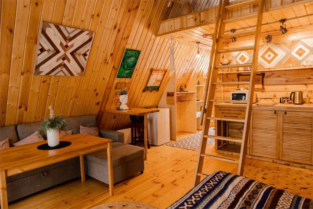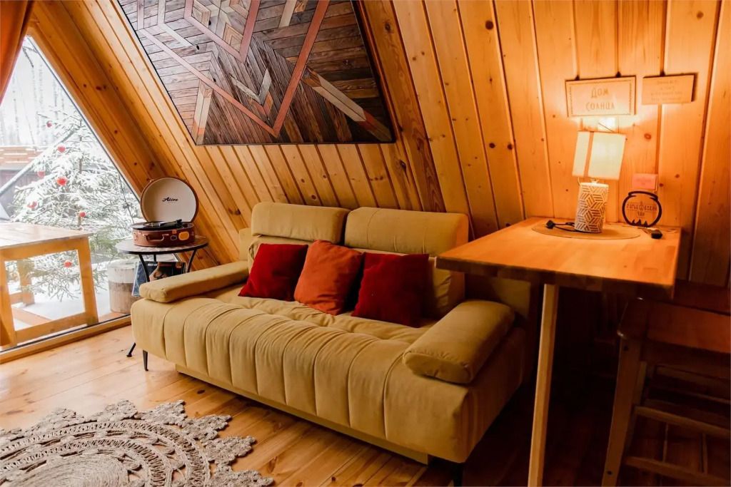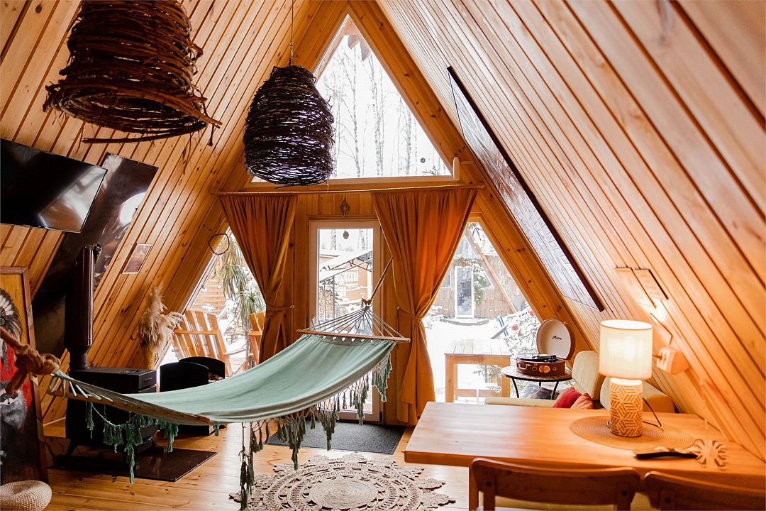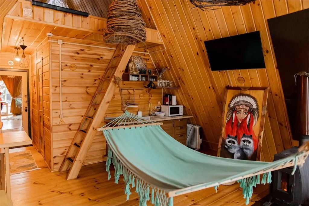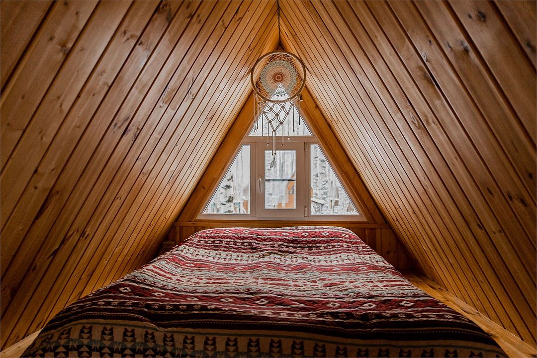 Треугольный дом А-frame. 2-4 спальных места. Гамак, антресоль.