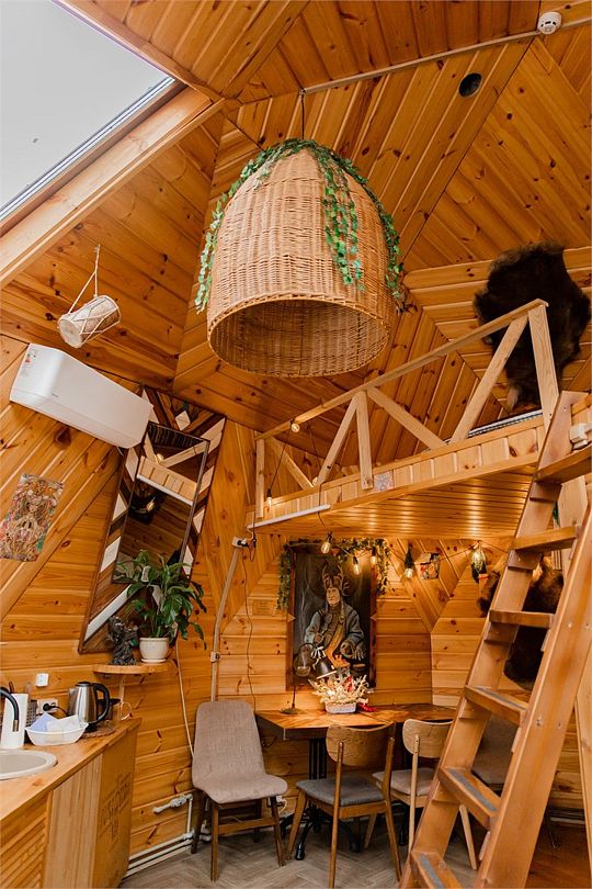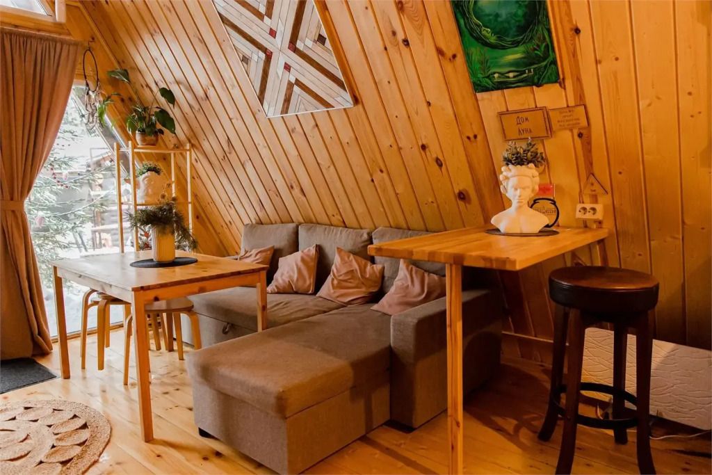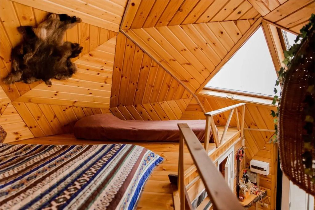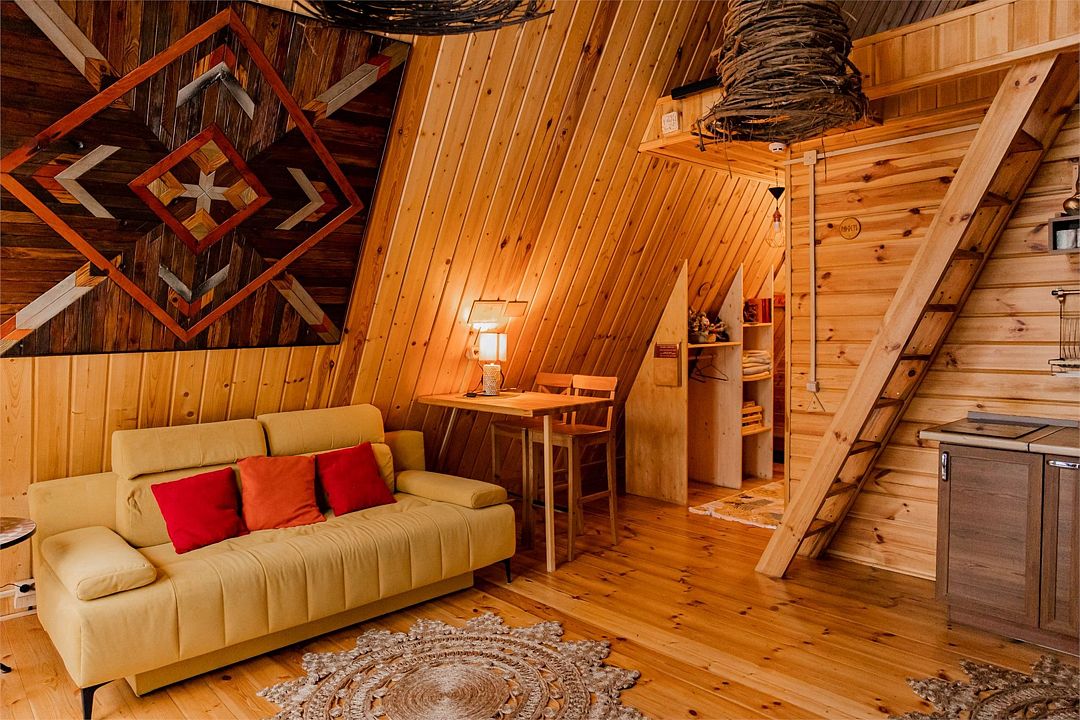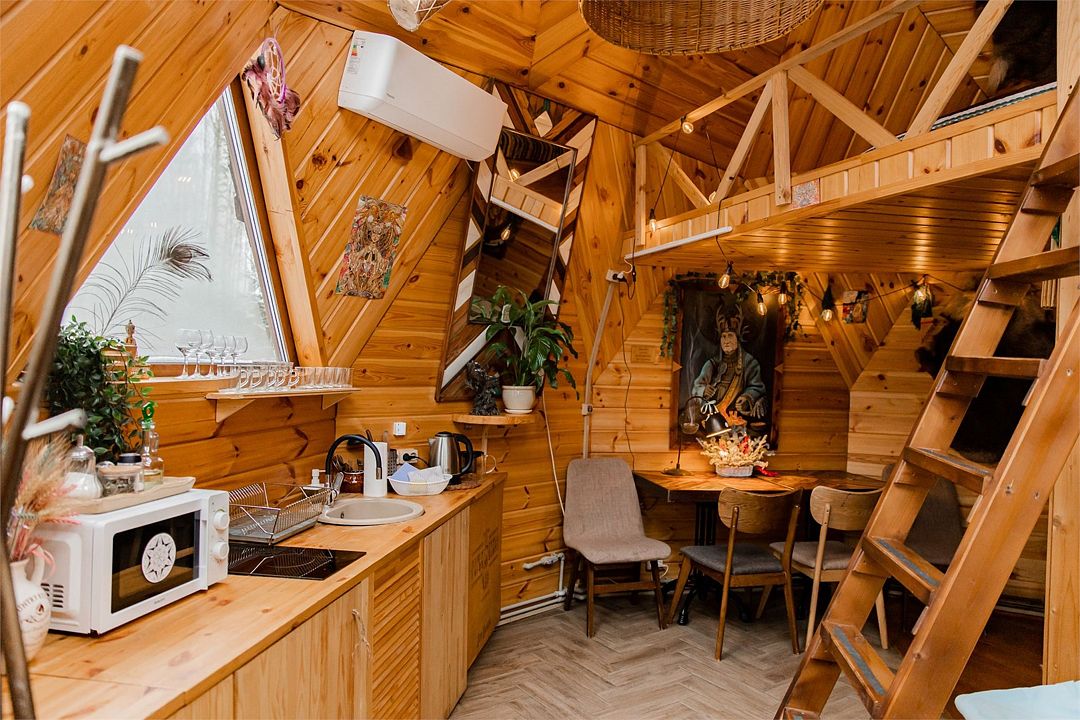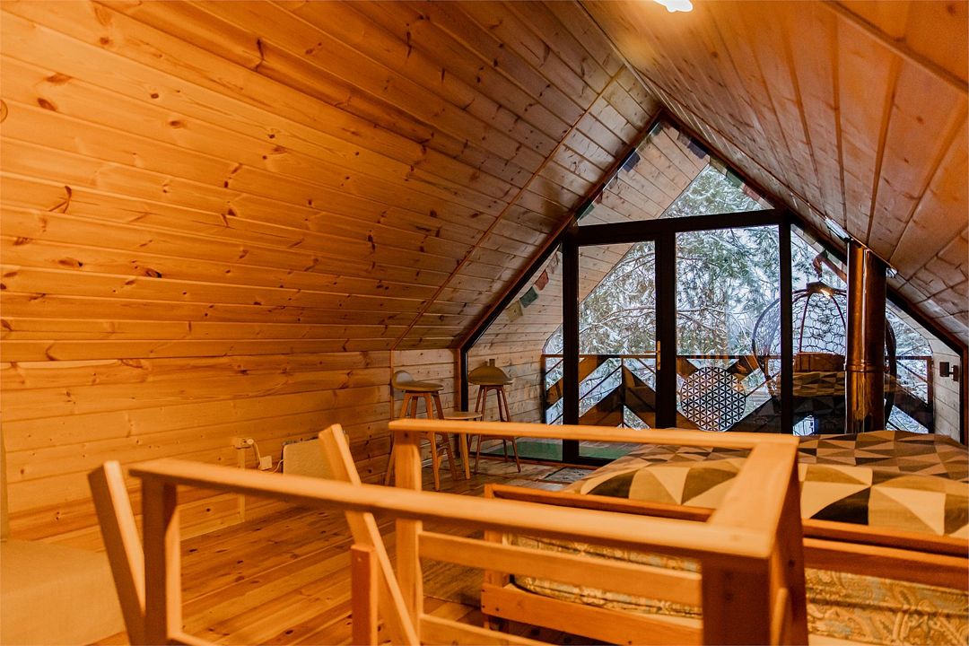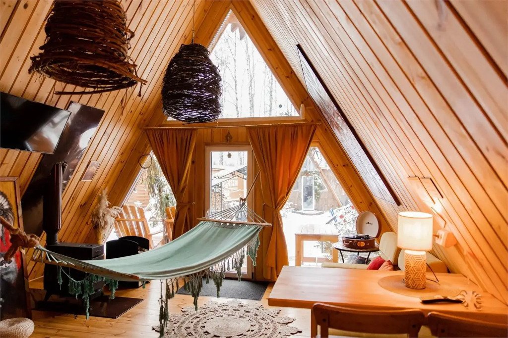 Треугольный дом А-frame. 2-4 спальных места. Гамак, антресоль.