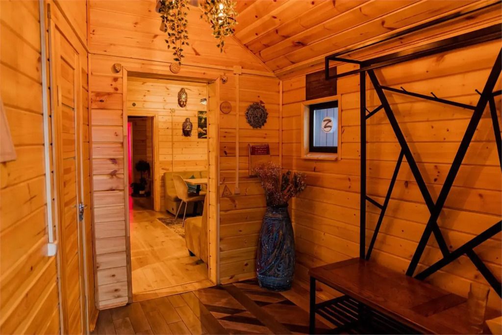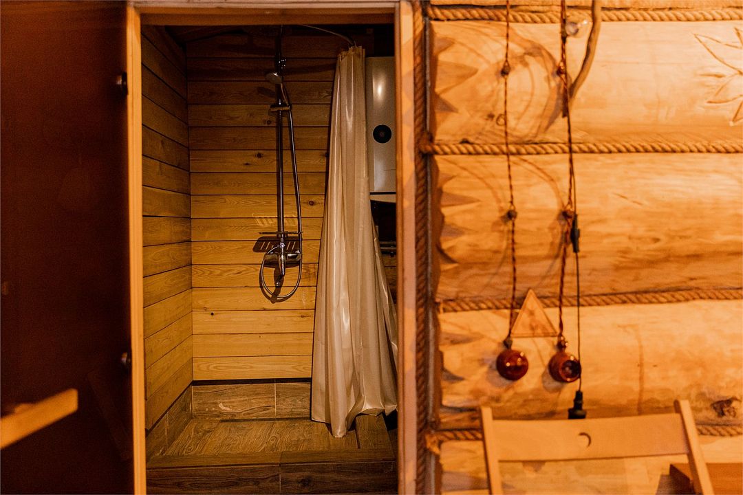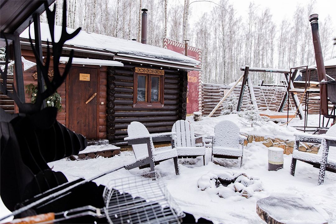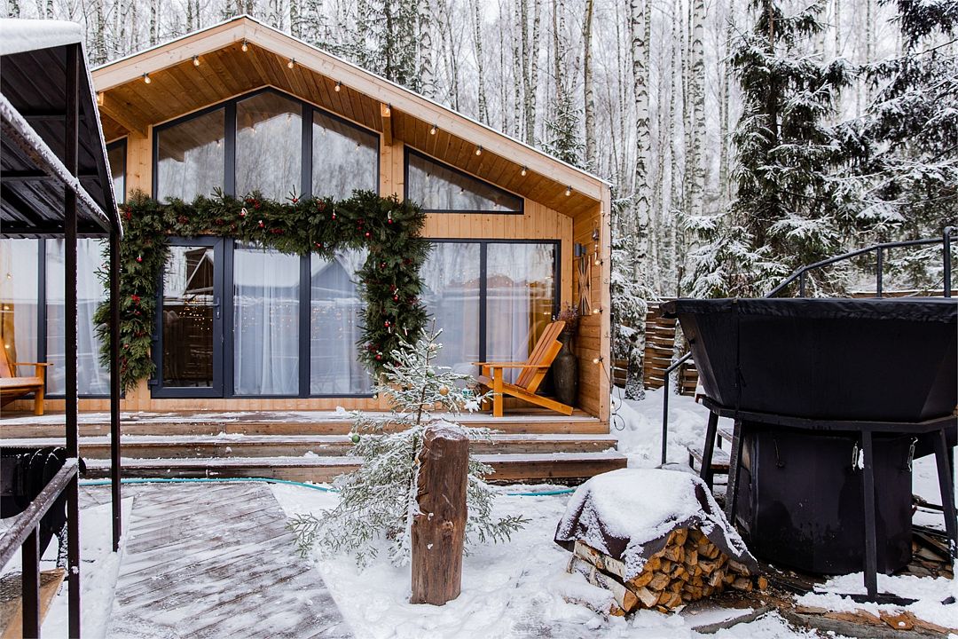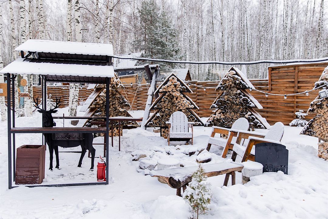 Территория Дома приватная, безлимитный чан (топит чанный мастер) со своим веником запрещено, крытая беседка a-frame, очаг, мангал-олень, качель.