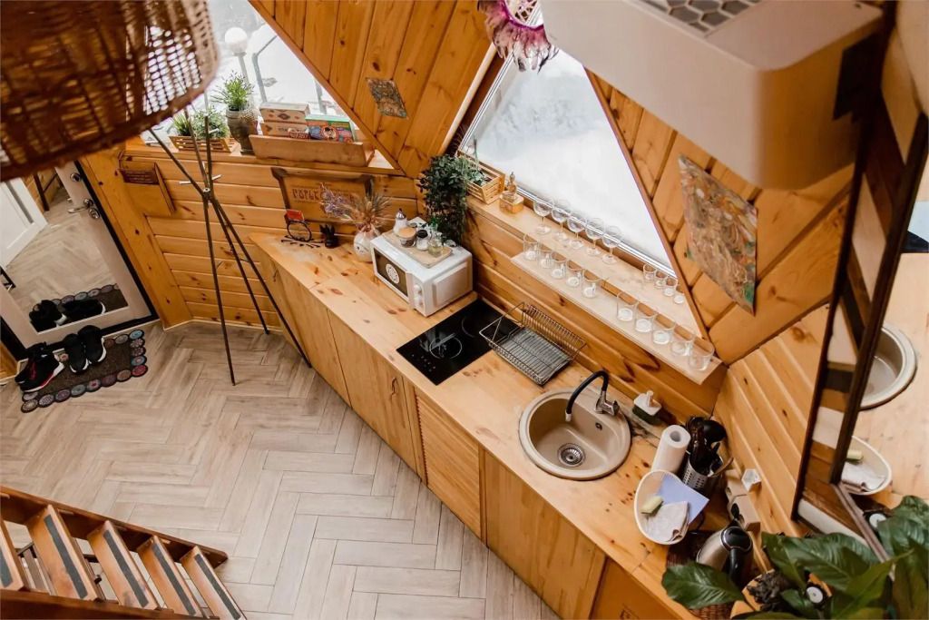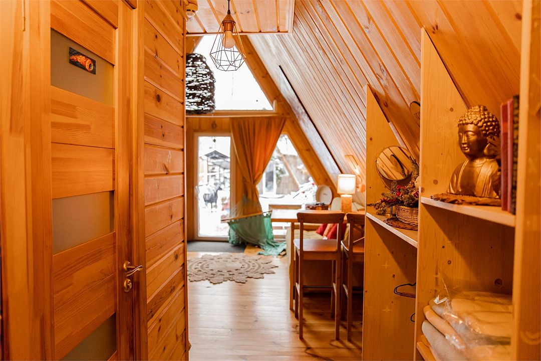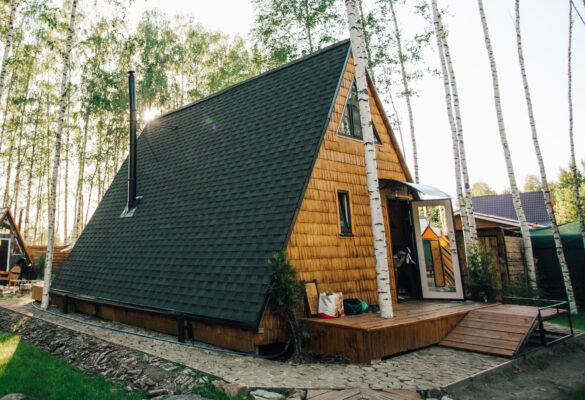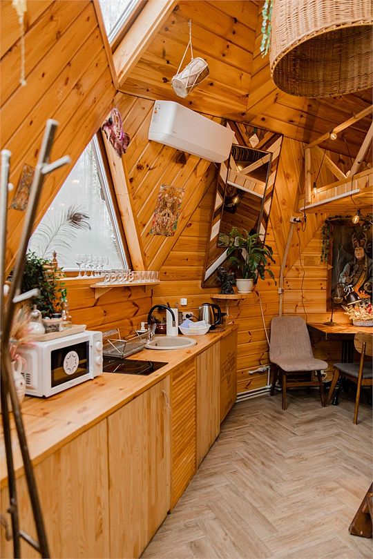 Домик с чаном и баней-треугольный дом А-frame.