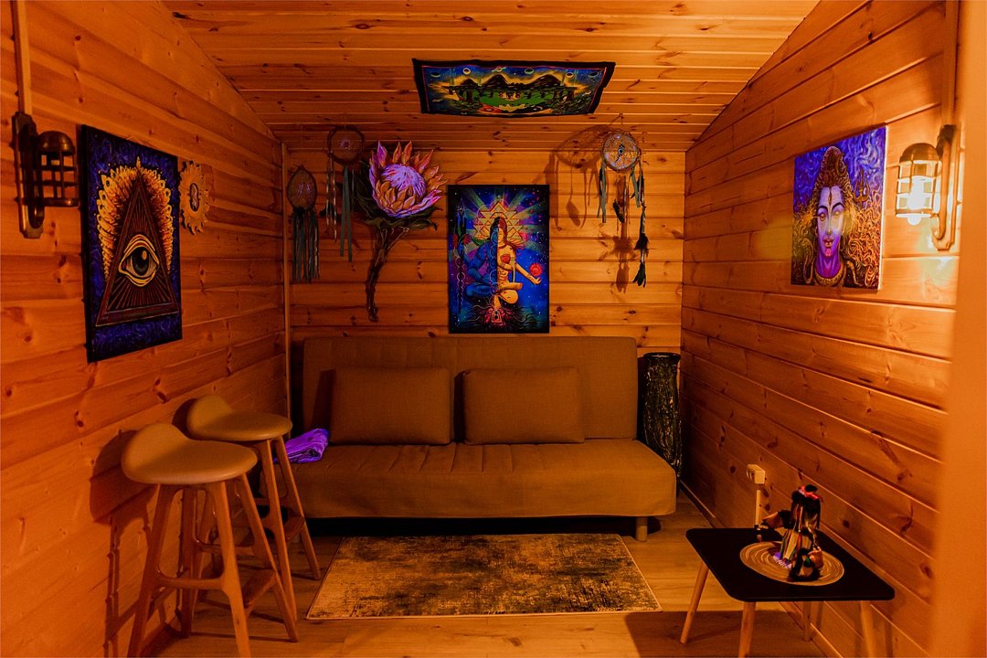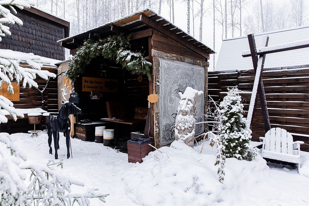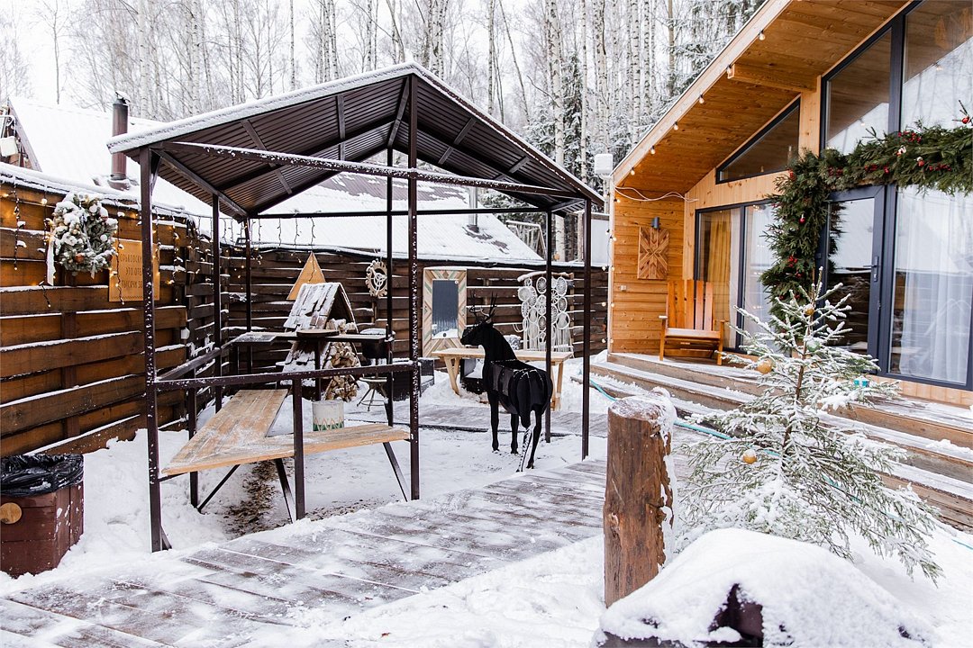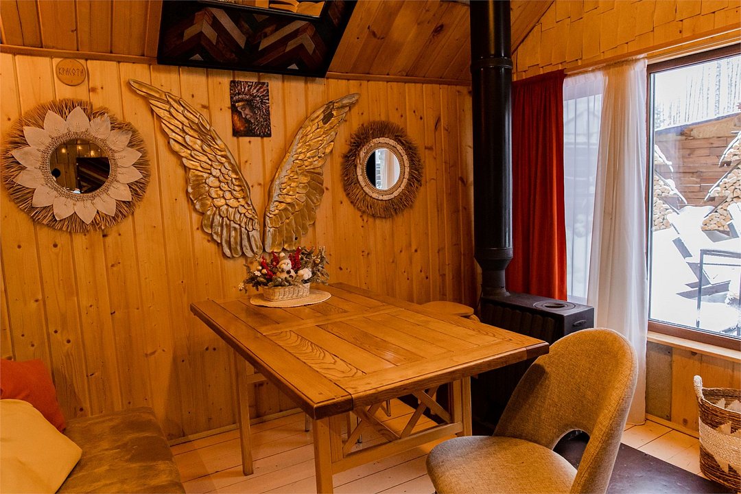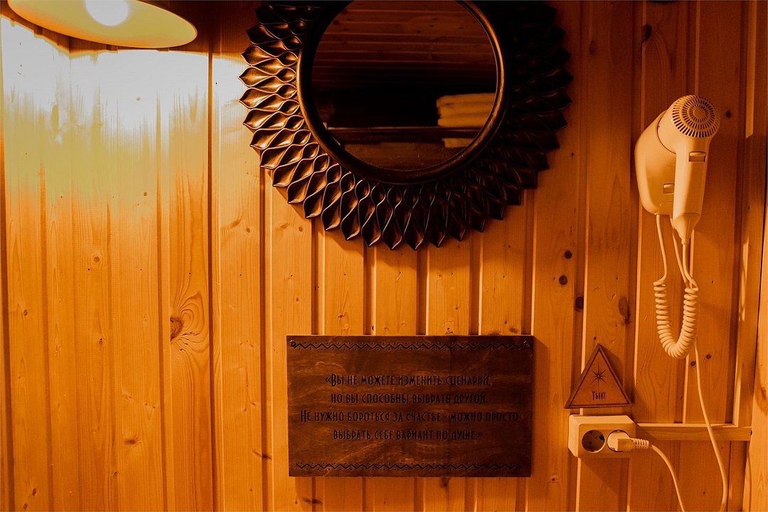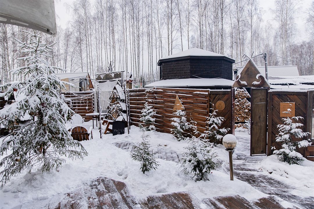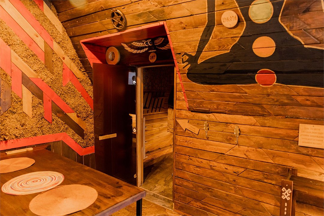 Приватная территория: неограниченное пользование чаном (растапливает чанный мастер), закрытый внутренний двор, зона для костра, мангал-олень, атмосферные фотозоны, тотемы и сказочная подсветка.